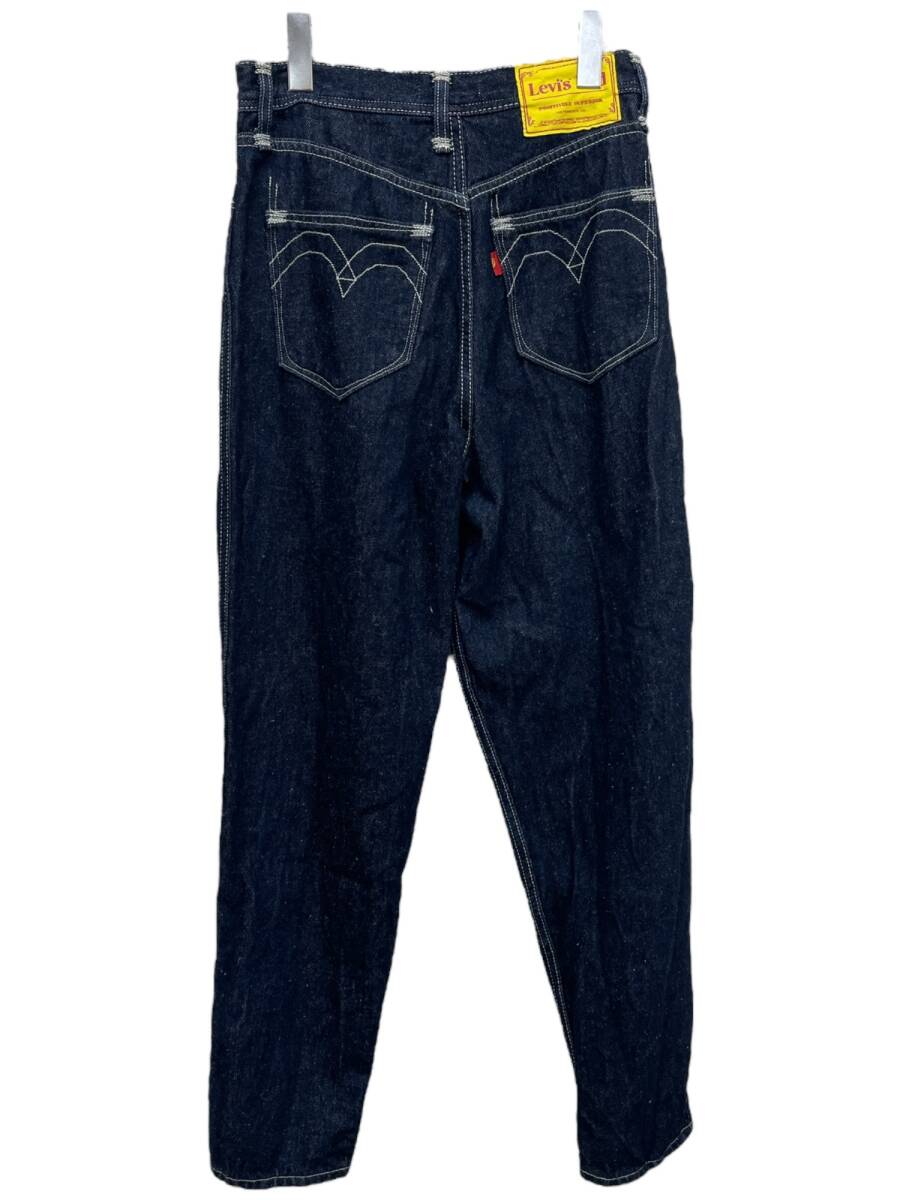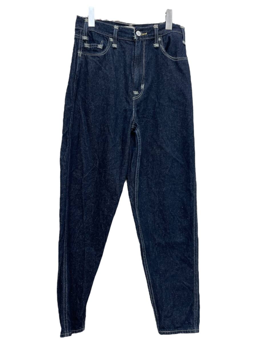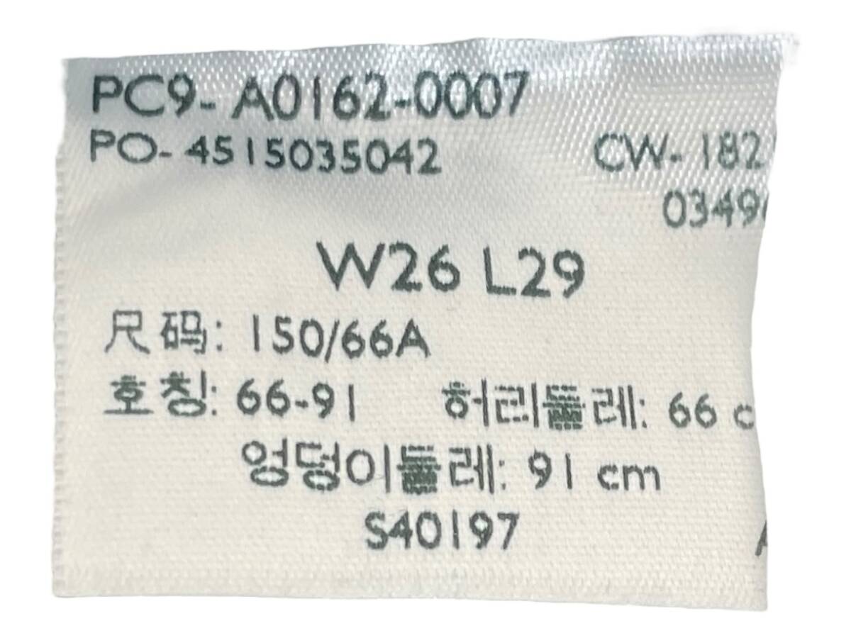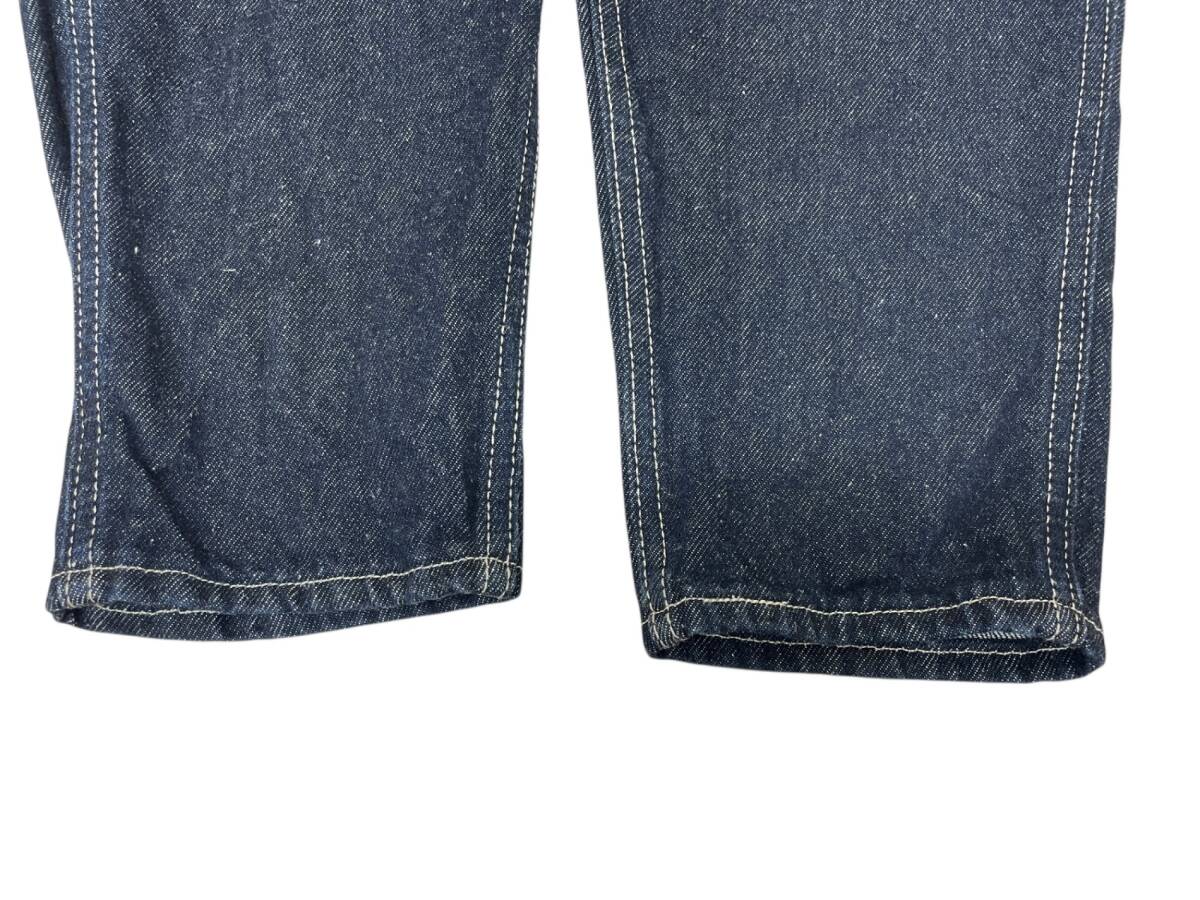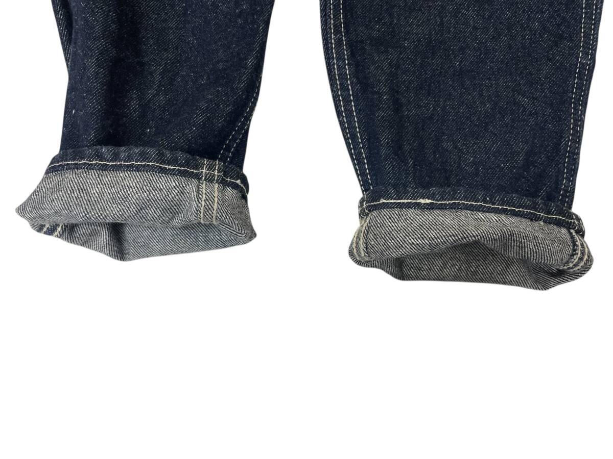 | 実寸サイズ | ウエスト:約68cm(平置きウエスト×2) 股上:約34cm(内股の合わせ~ウエスト上端) 股下:約67cm(内股から裾) もも幅:約23cm 裾幅:約14cm |