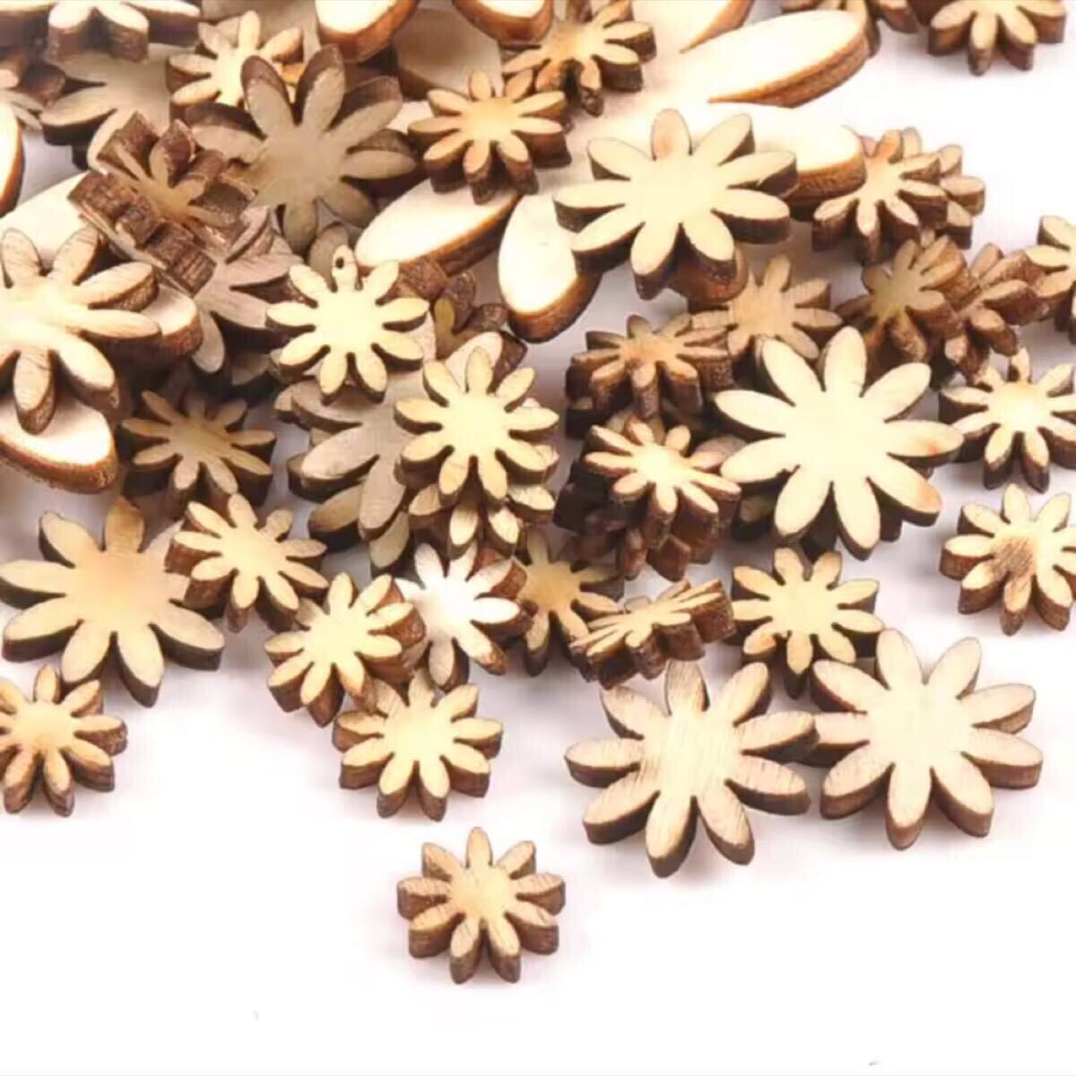 値下不可商品。さまざまなサイズの花が50点。そのままでも置物(インテリア)になりそうですが、トールペイントの材料にするのがオススメです。アクセサリーに加工したり、利用方法いろいろです。送料無料。値下不可商品です。よろしく御願い致します。出品者はガラスケースの中に色とりどりに塗ったものを散りばめてアクセサリーの引き立てるのに利用していました。