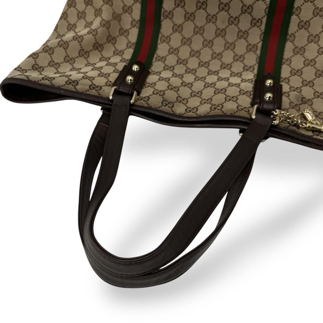 GUCCI  ハンドバッグ 大容量 A4収納可 ゴールド金具 GG柄 総柄 ブラウン レザー