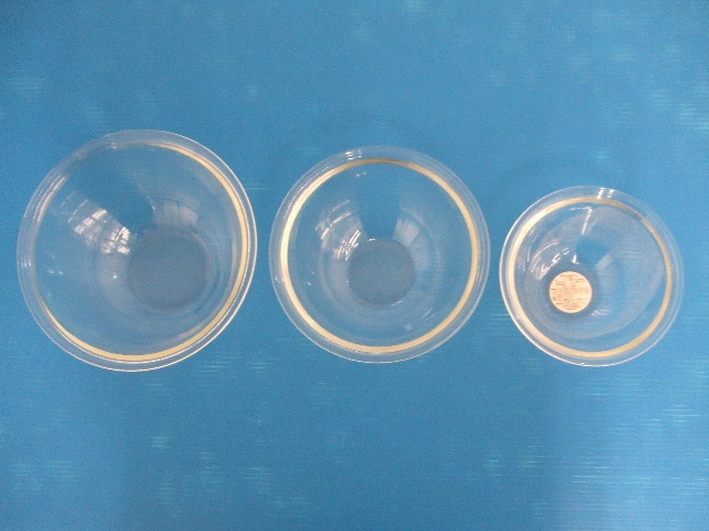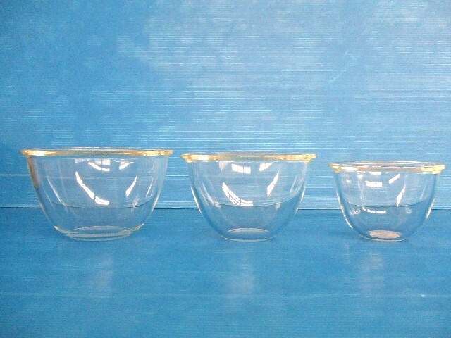 「HARIO」の耐熱ガラス製ボウル3個セットです。