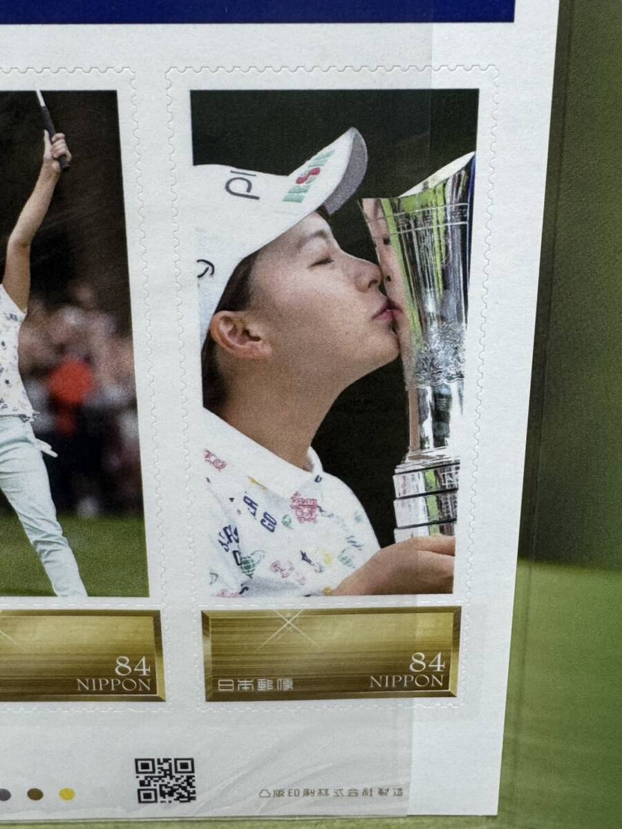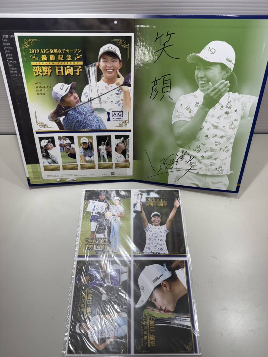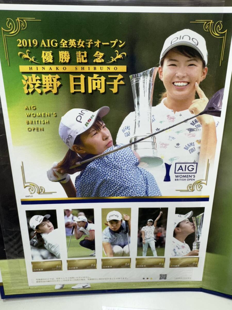 超レア! サイン入り 渋野日向子選手 2019AIG全英女子オープン優勝記念フレーム切手セット ポストカード4枚付き ★