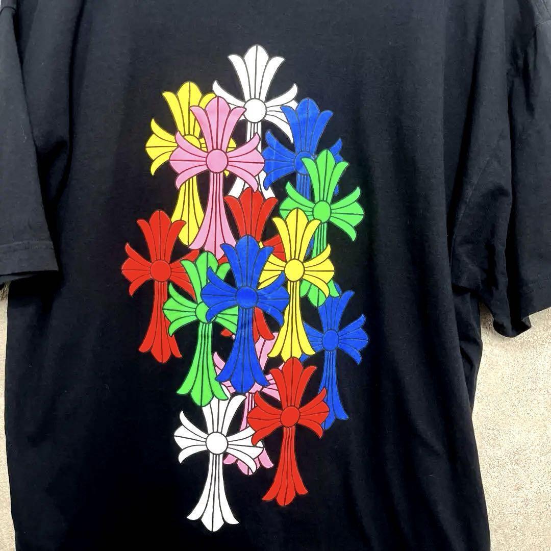 クロムハーツ マルチカラー CHクロス プリントTシャツ 半袖 黒