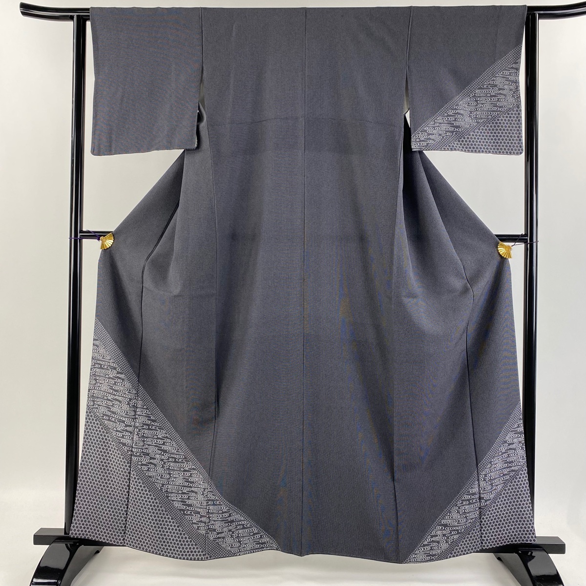 | 付下げ 美品 名品 観世水 籠目 黒灰 袷 身丈161 裄丈62 S 正絹 【中古】 |