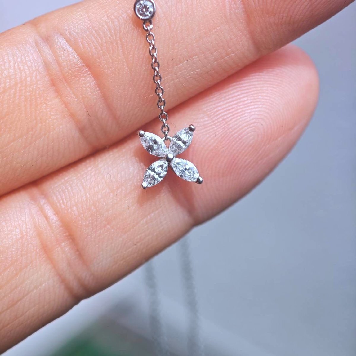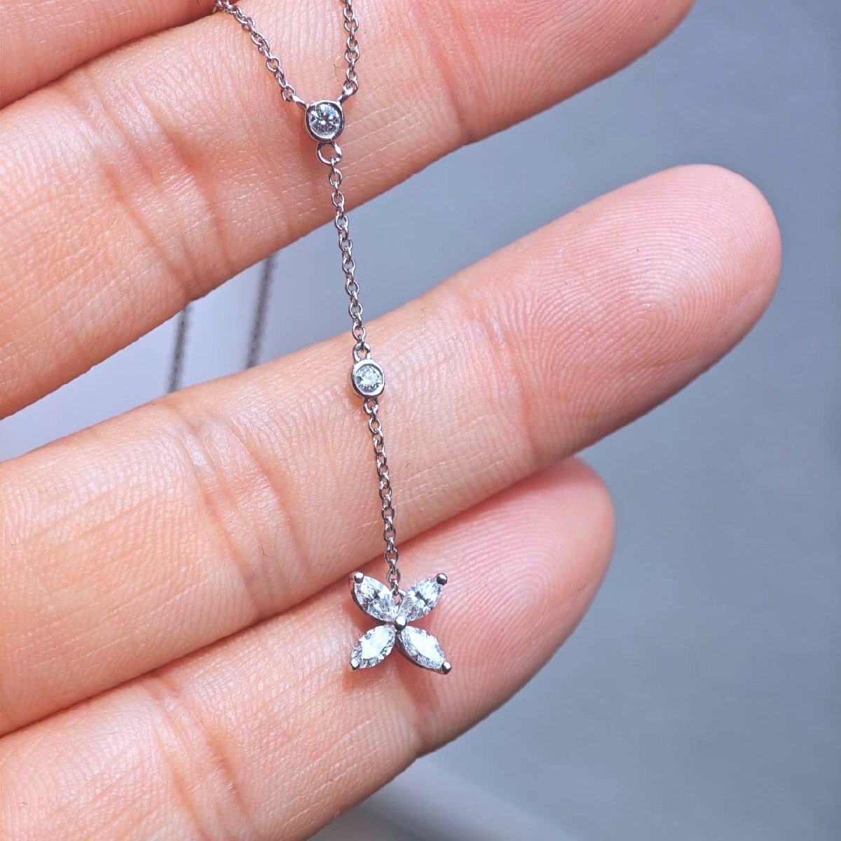 さらに、「Pt950」という刻印。これは、95%が純粋なプラチナであることを意味する。その高貴な純度は、アレルギー反応を起こしにくく、敏感な肌にも優しい。そして、ゴールドよりも密度が高く、粘り強いという特性は、ダイヤモンドを確実に、そして永遠に保持するための強度を与えてくれる。このネックレス「F4304」の繊細な爪を見てほしい。最小限のプラチナで、四つのマーキースダイヤモンドを、まるで空中に浮いているかのように軽やかに、しかし絶対に離さないという強い意志をもって、留めている。これは、ティファニーが1世紀以上にわたって培ってきた、世界最高峰のセッティング技術の証左に他ならない。
