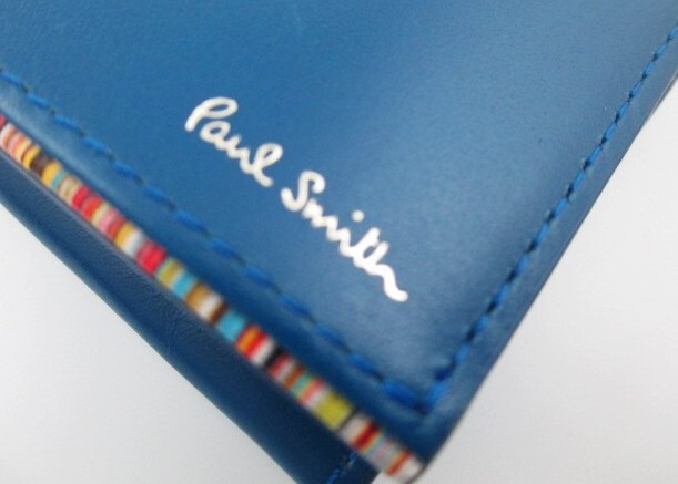 ☆お買い得☆未使用品箱なし☆ポールスミス 人気ストライプ 名刺入れ ブルー☆