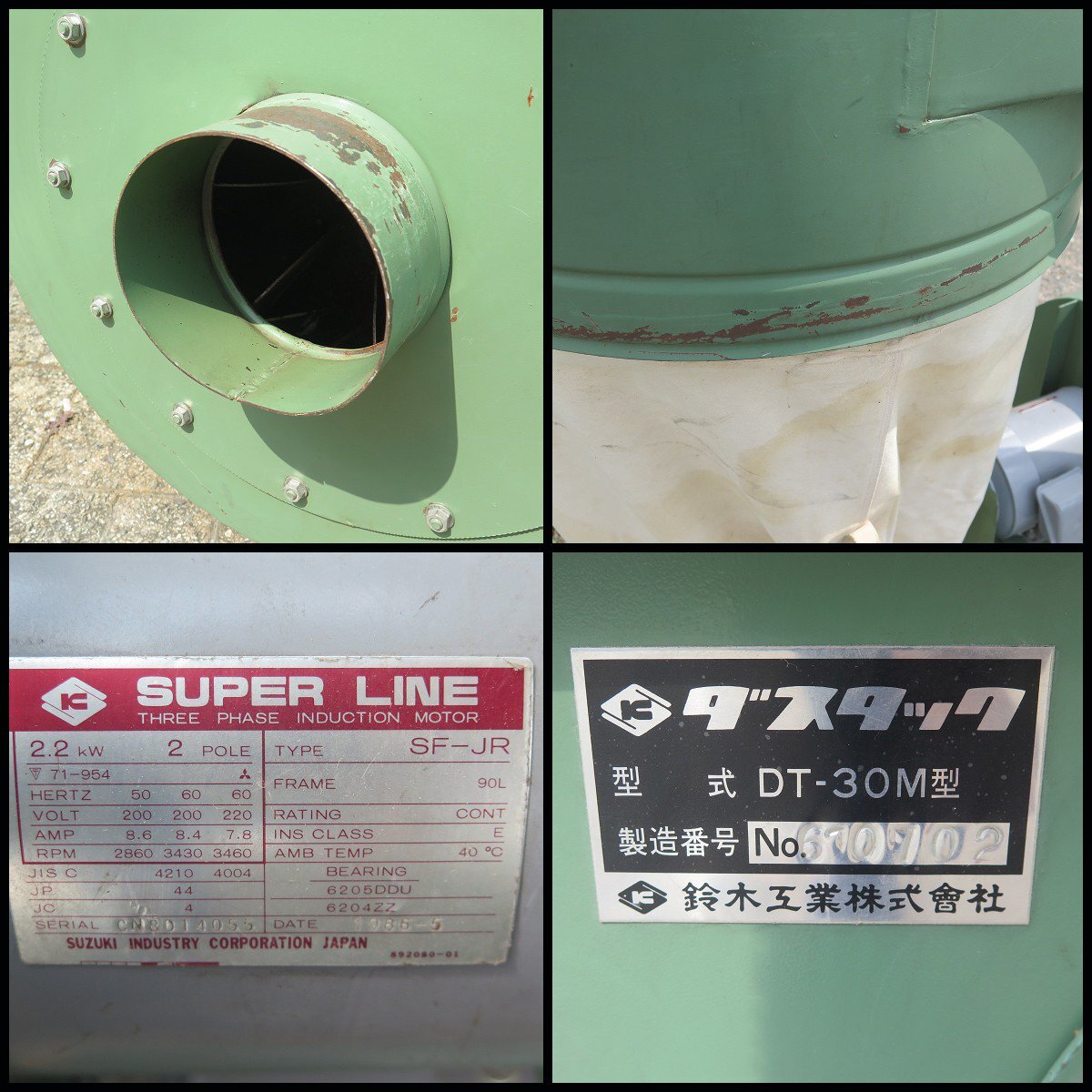 △鈴木工業 木工用 集塵機 ダスタック DT-30M型 3馬力 清掃/集じん機/吸塵/吸込み/木工機械/木工業
