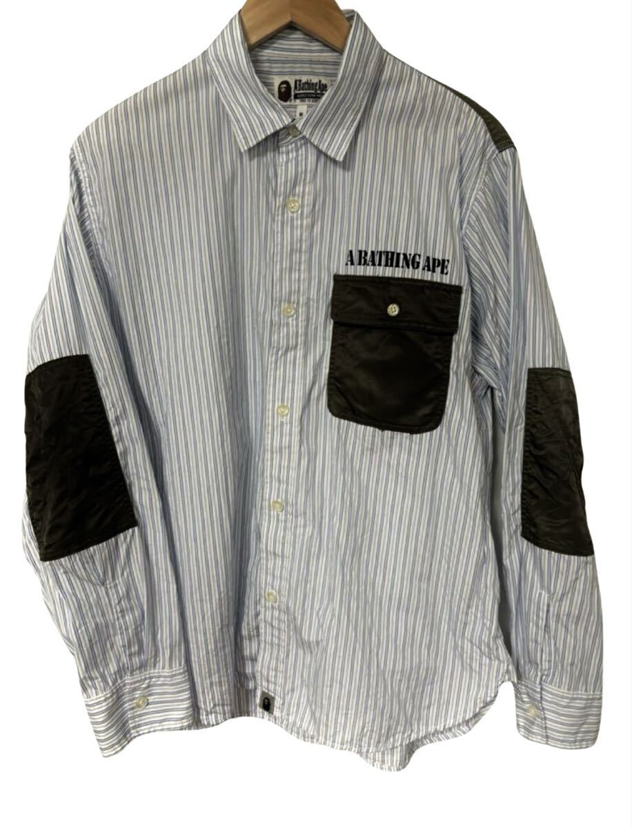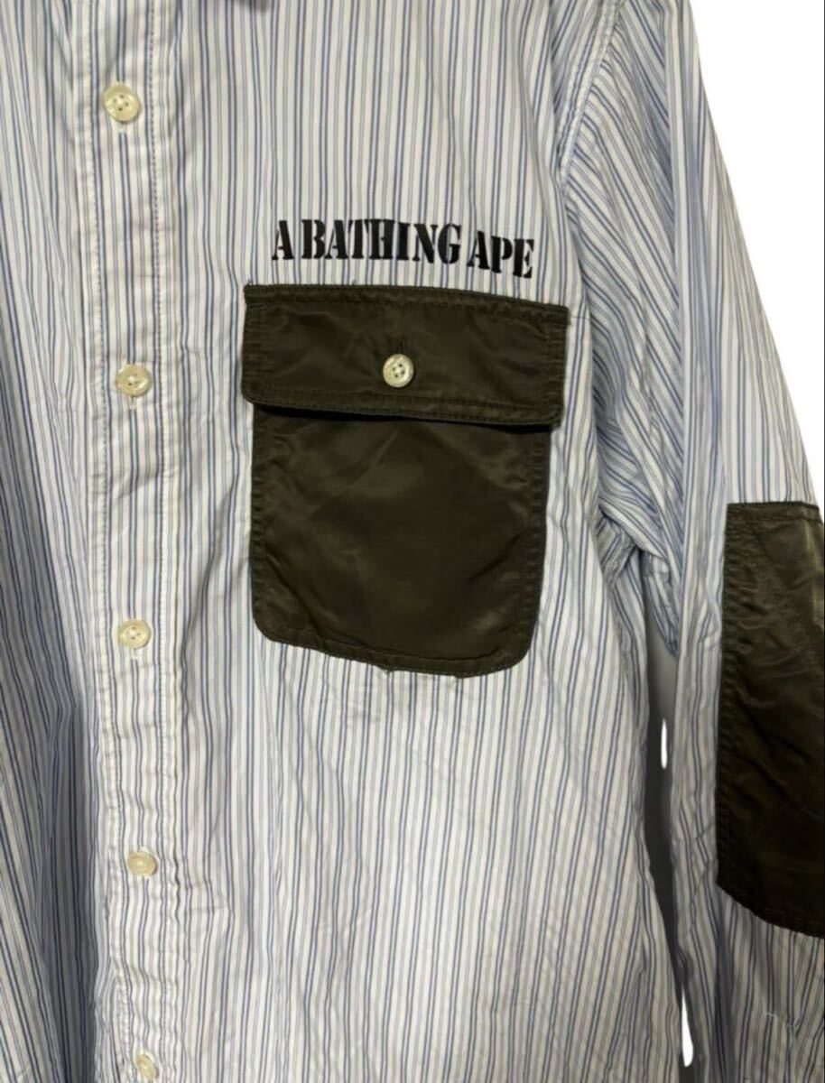 こちらは、A BATHING APE(ア ベイシング エイプ)のナイロン素材切り替えストライプシャツ。まるでPORTERのTANKERシリーズのような質感を持つナイロン生地で切り返した、ブランドならではの遊び心と上質さが融合した一着です。