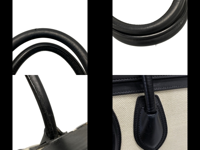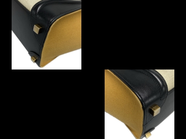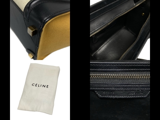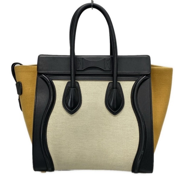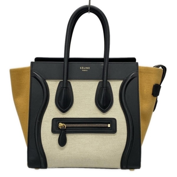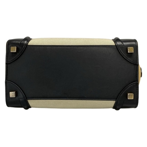 セリーヌ CELINE ハンドバッグ ラゲージマイクロショッパー レザー アイボリー×黒×ライトブラウン トリコロール バッグ
