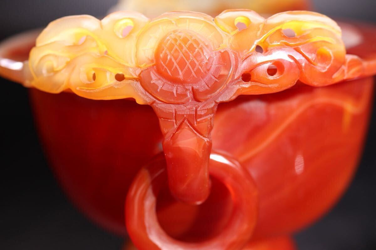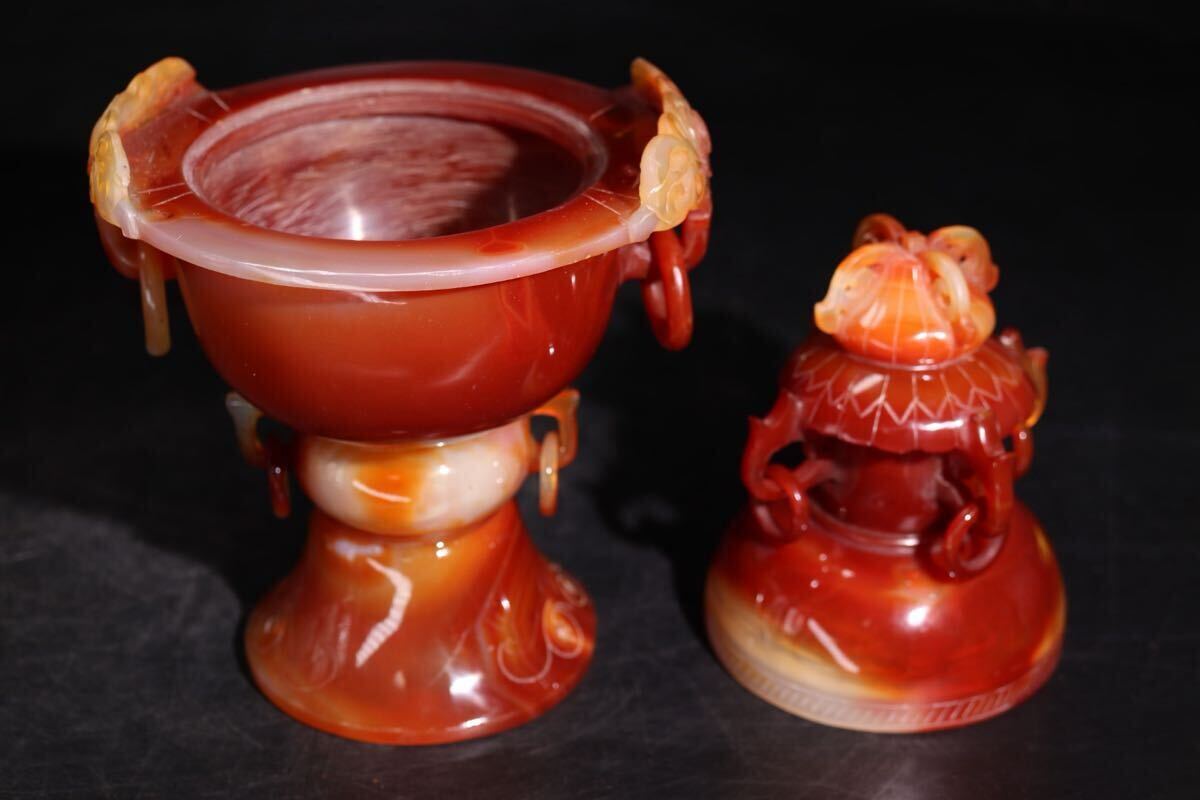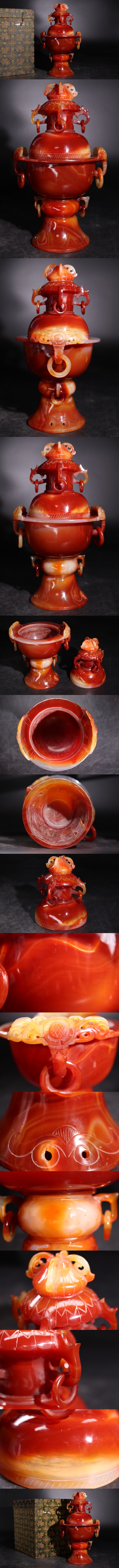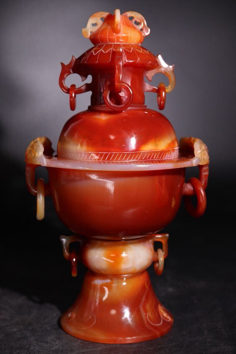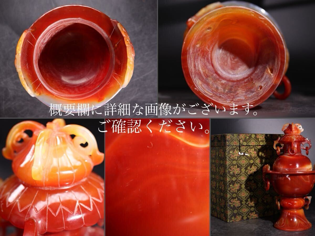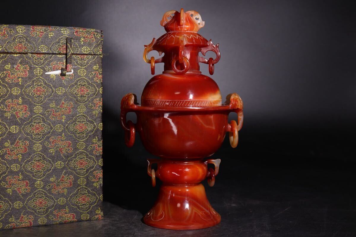 | 時代 砡 赤瑪瑙 遊環 香炉 箱付 / 中国美術 石工芸 瑪瑙 メノウ 彫刻 香道具 煎茶道具 .G2211 |