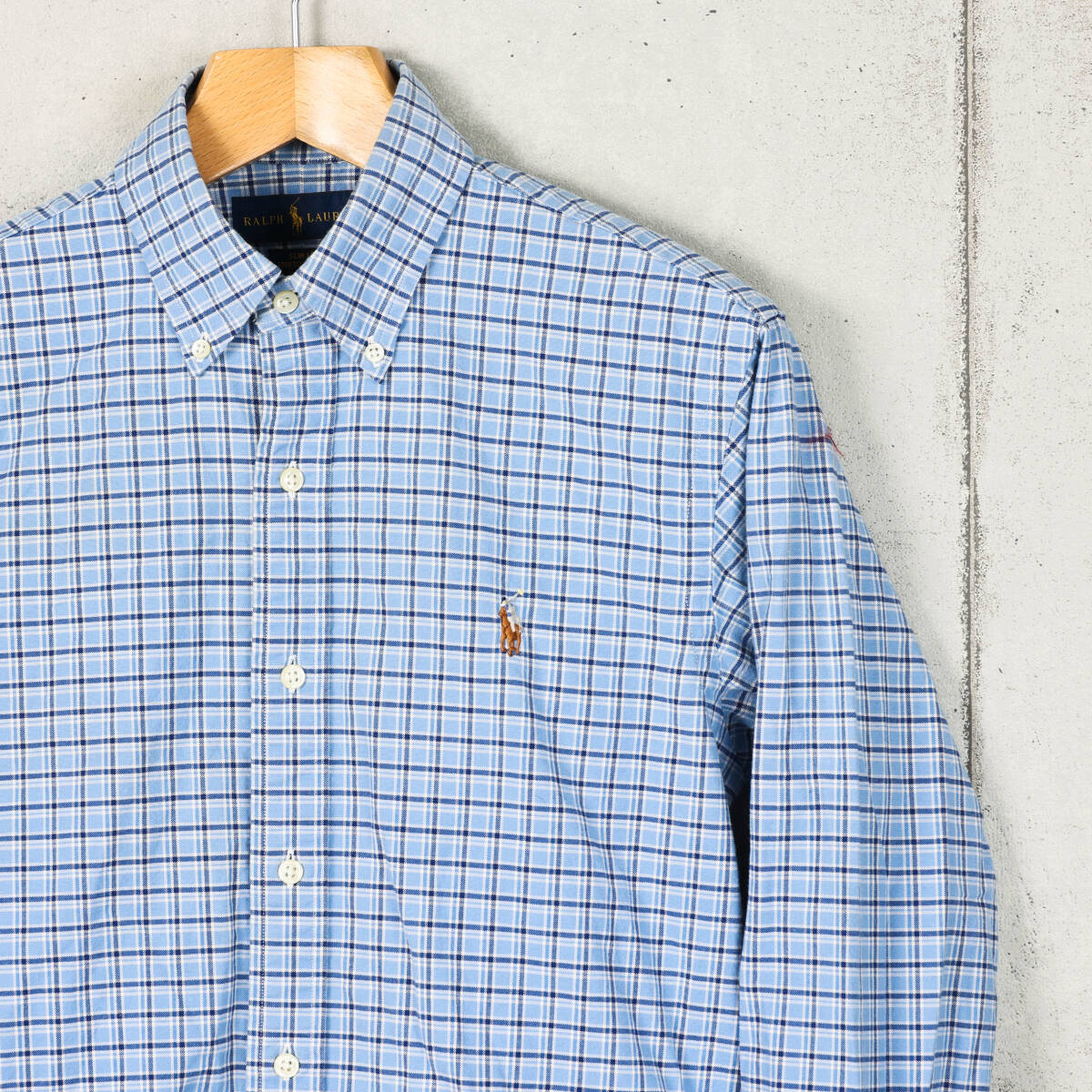 【ブランド】 Polo Ralph Lauren / ポロラルフローレン 【アイテム】 SLIM FIT オックスフォード チェック ボタンダウンシャツ 【商品説明】 アメリカで購入しました、ラルフローレンのオックスフォード素材が使用されたチェック柄のボタンダウンシャツになります。 【カラー】 ブルー×ネイビー×ホワイト 【コンディション】 使用に伴う色落ちや擦れなどがあります。 【サイズ】 サイズ:S 身幅:50cm 肩幅:44cm 着丈:73cm 袖丈:63cm | |||