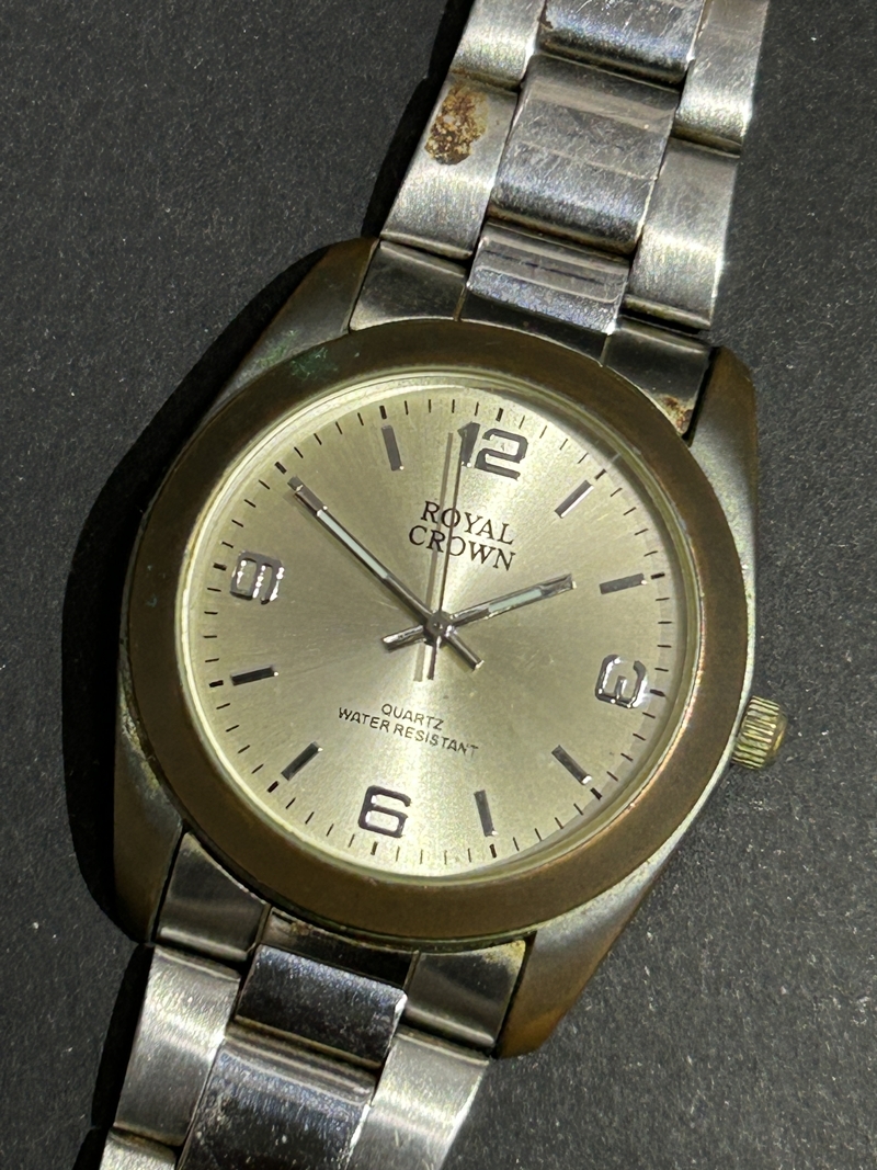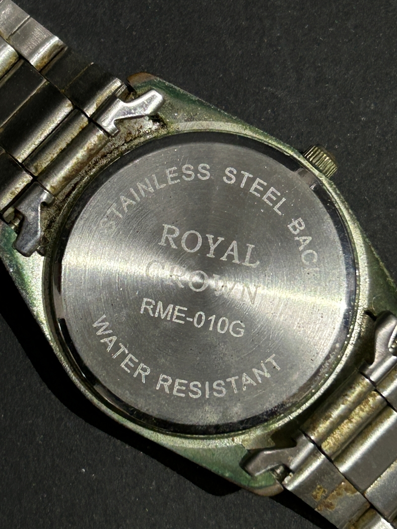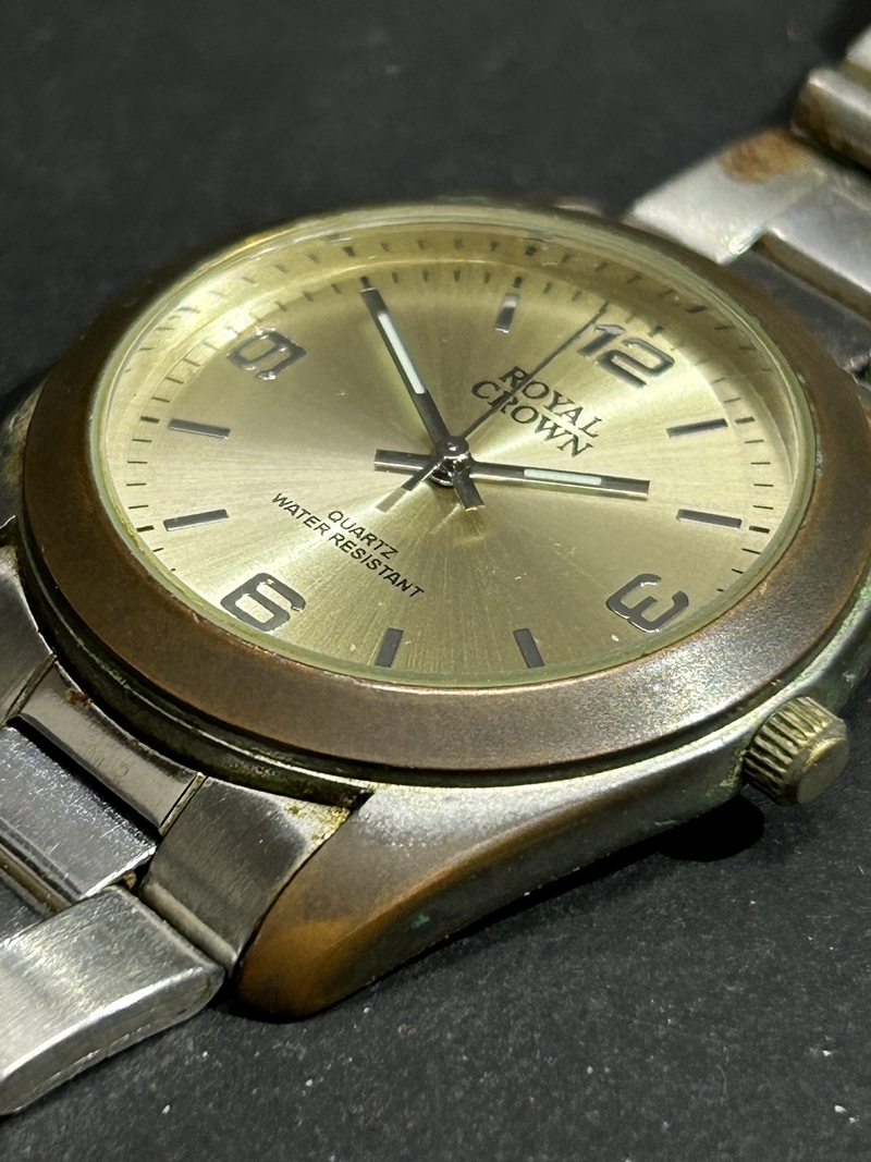 | 【お盆休み期間の発送のご案内】 勝手ながら8/10~8/15まで休みとなります。 発送は18日より順次発送致します。 大変込み合うことが予想されますのでご理解のほどお願い申し上げます。 ご入金確認は8/8午前中までとさせて頂きます。 その後のご入金商品は休み明けの発送となりますので宜しくお願い致します。 ロイヤル クラウン メンズ 腕時計の出品です。 動作はしていませんのでジャンク品としての出品です。 経年による傷やスレ、汚れ、変色などがあります。 ベルトが破損していますのでご理解のご検討ください。 状態など写真でご確認の上、ご検討ください。 基本的には used品の出品になります。 本文の記載事項があっても 現物優先とさせていただきます。 予めご了承下さいませ。 動作確認済みの物でも、時間の経過後の動作の保証はできません。 その他不明な点がございましたら、当方がわかる範囲にてお答えします。 | |||