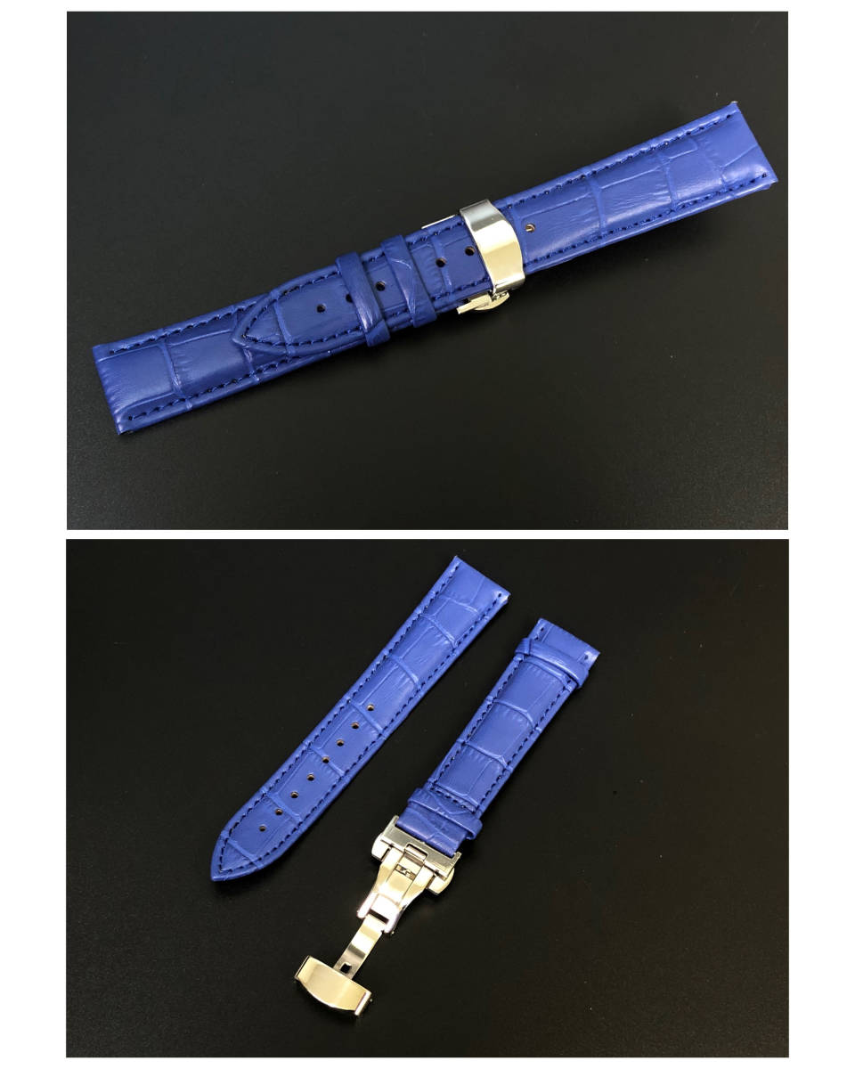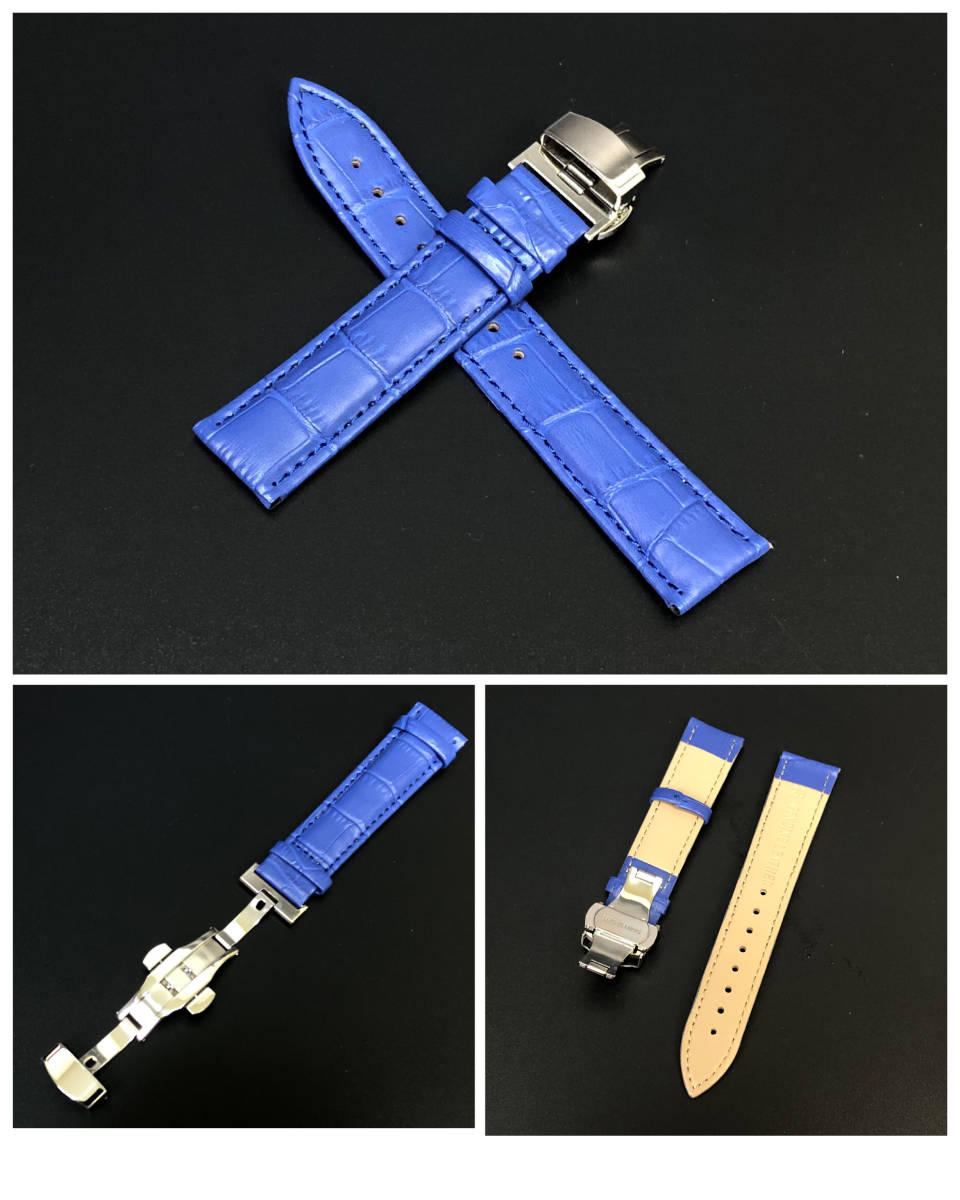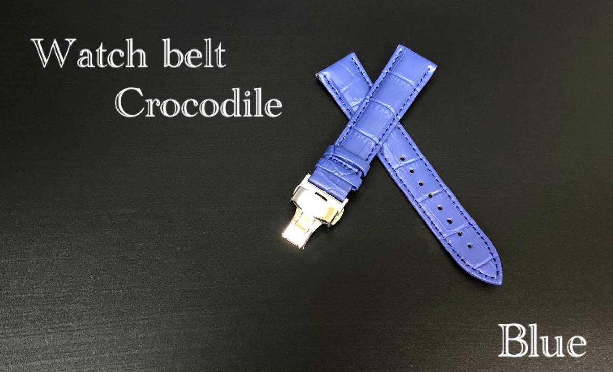腕時計ベルト 時計バンド 替えベルト Dバックル レザー カーフ革 革 クロコダイル型押し 腕時計 時計 レザーベルト 20mm ブルー