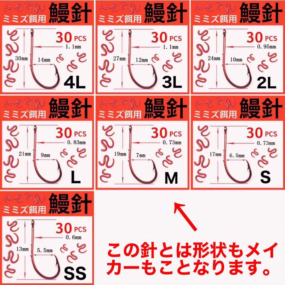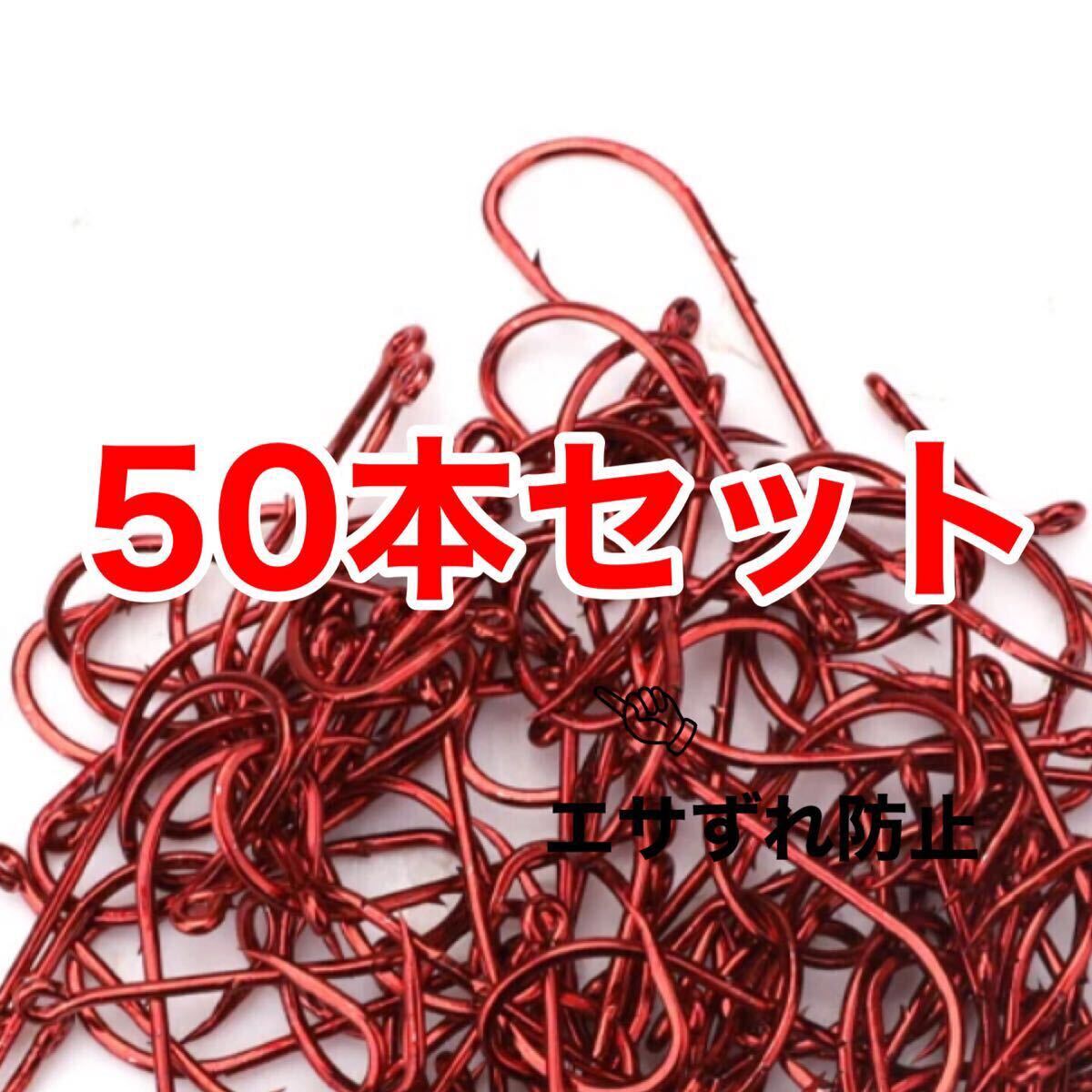 ドバミミズ を餌にしての釣りに最適な赤針。50本セット。送料無料。赤い鰻針は数種類出品。すべて形や大きさが異なります。