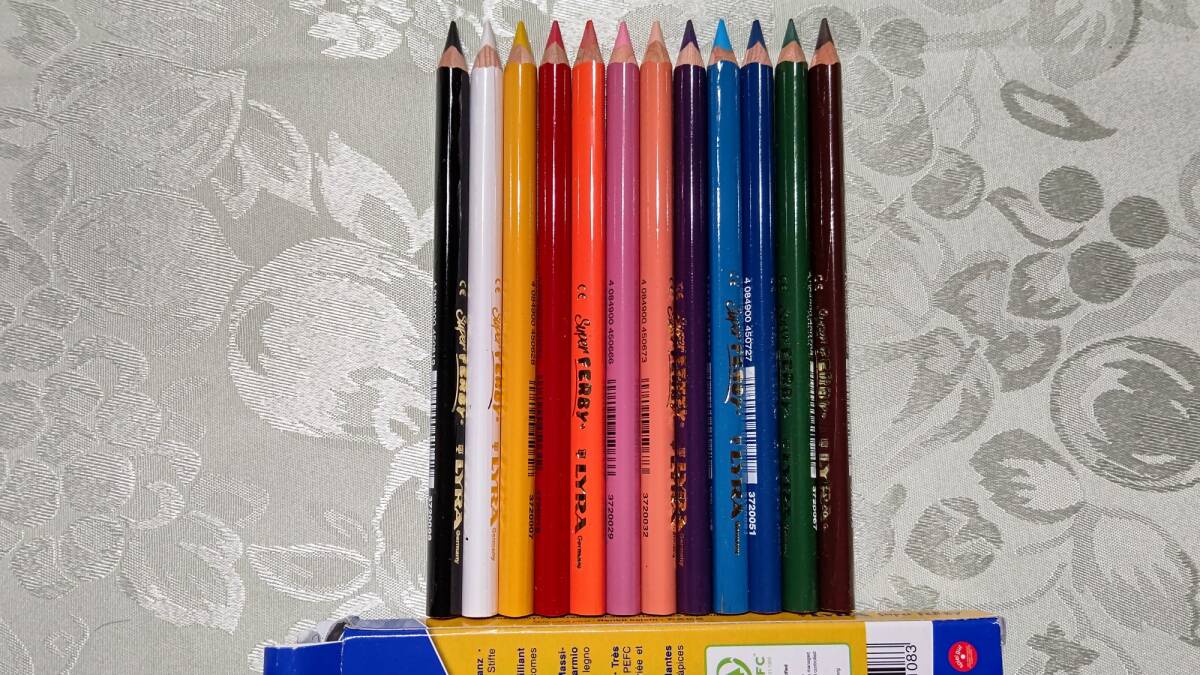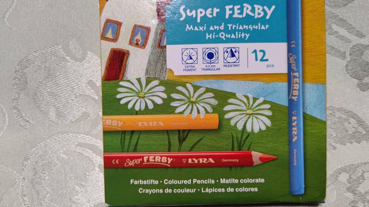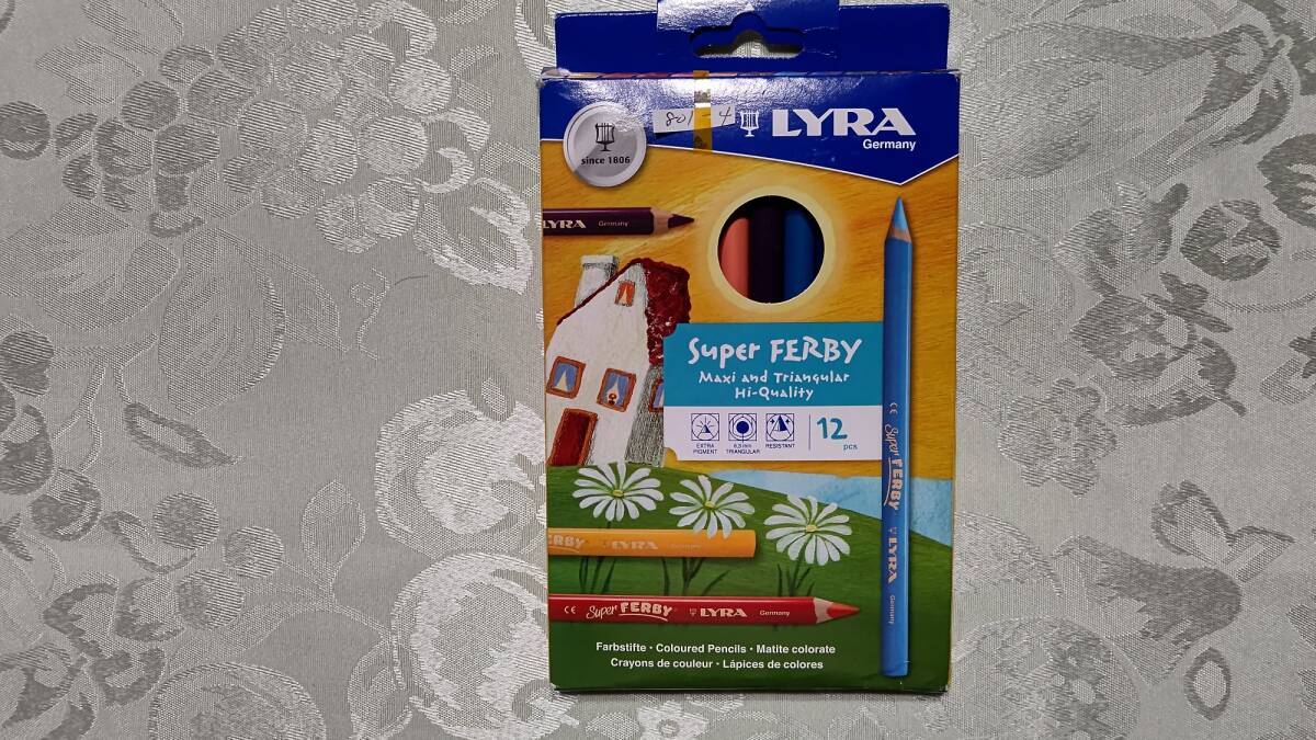 801-4 ドイツ製 リラ LYRA Germany 色鉛筆 白木 三角グリップ Super Ferby 太軸 12色セット 箱入り