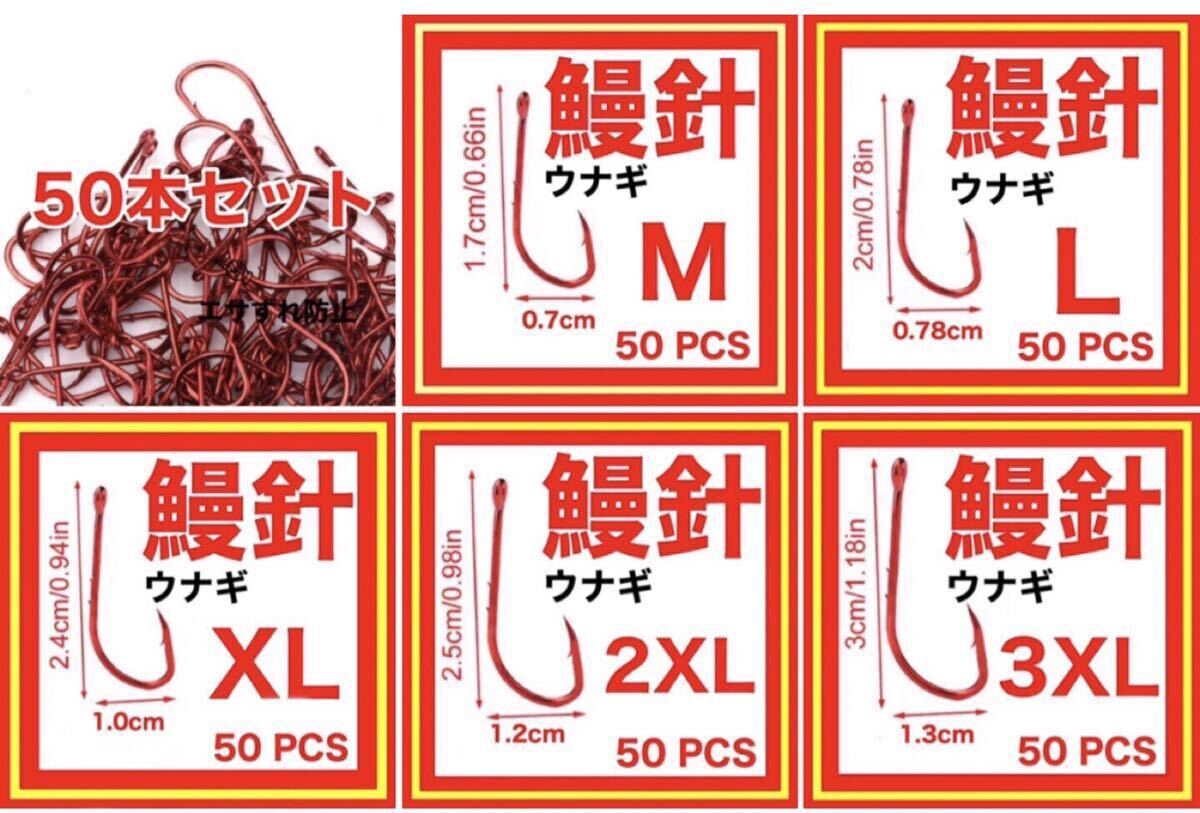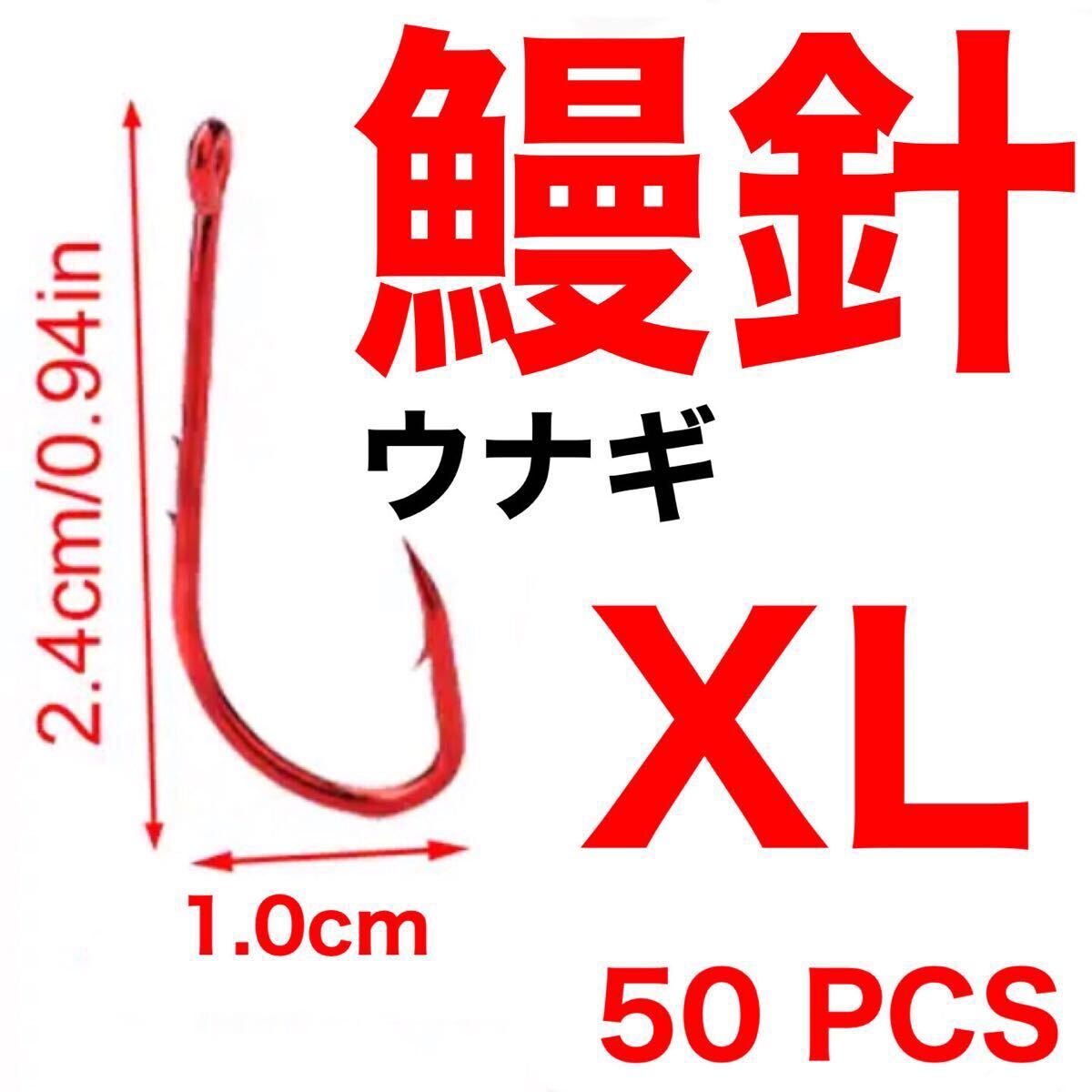 ドバミミズ を餌にしての釣りに最適な赤針。50本セット。送料無料。赤い鰻針は数種類出品。すべて形や大きさが異なります。