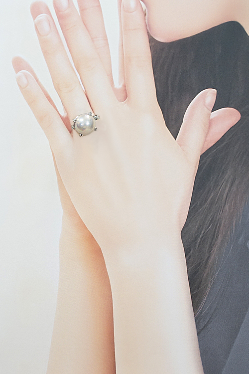 ■コメント | タサキの、マベパールのオーロラのような艶のある輝きが上品なリングです 立体的なスリークォーターパールなので、しっかりと存在感のある一品です アームには全周にわたりツヤ消し加工が施されています |