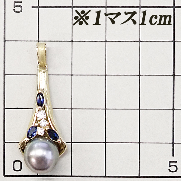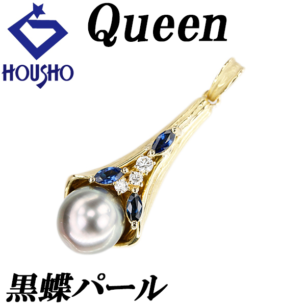 クイーン 黒蝶真珠(南洋真珠) ペンダントトップ ダイヤモンド サファイア K18YG Queen ツヤ消し マット 宝正 900392