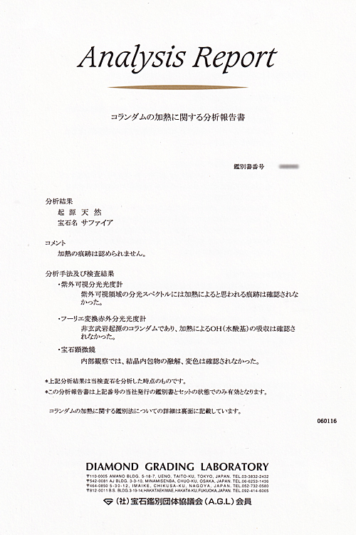■付属品 | ダイヤモンドグレーディングラボラトリー鑑別書(カバーにやや汚れあり) |