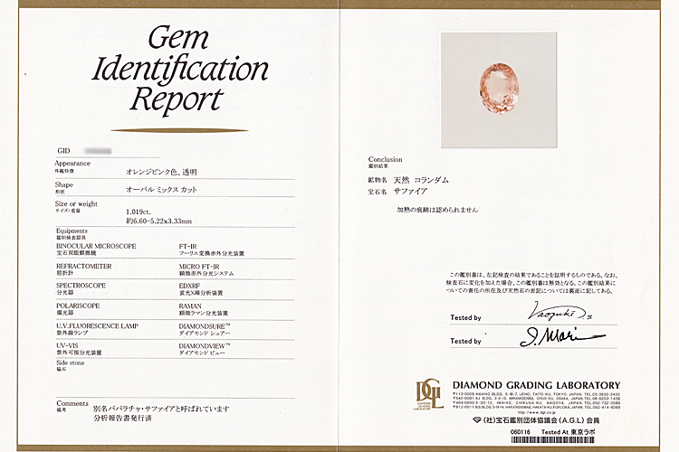 ■パパラチアサファイア | 色 : オレンジピンクの色合い クラリティ : 10倍の拡大でも内包物の確認が困難な程度 ※側面に目立たない程度の傷があります |