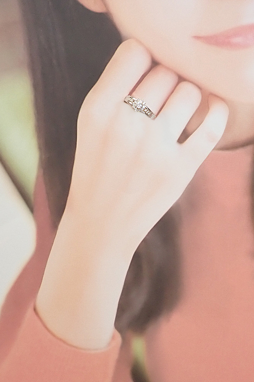 コメントクレサンベールの、ダイヤモンドが眩く輝く、華やかな印象のリングです。石座にはアクセントにイエローゴールドが使用され、可愛らしいダイヤモンドのフラワーのシルエットが引き立ちます。