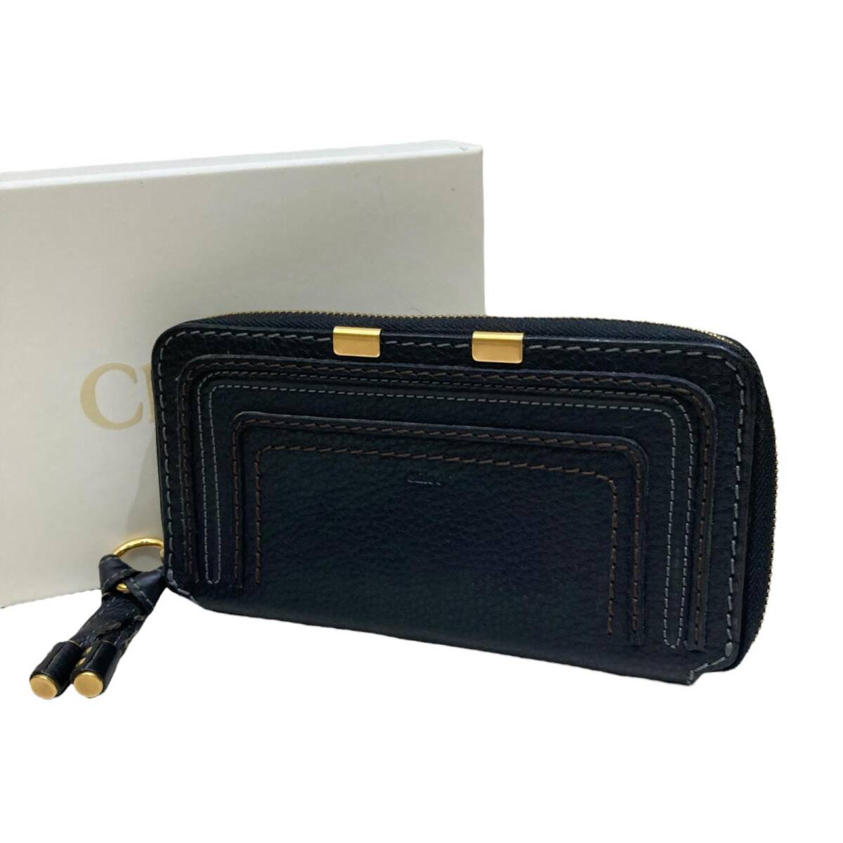 | Chloe クロエ マーシー レザー ラウンドファスナー 長財布 B0QD41 黒 ゴールド金具 |