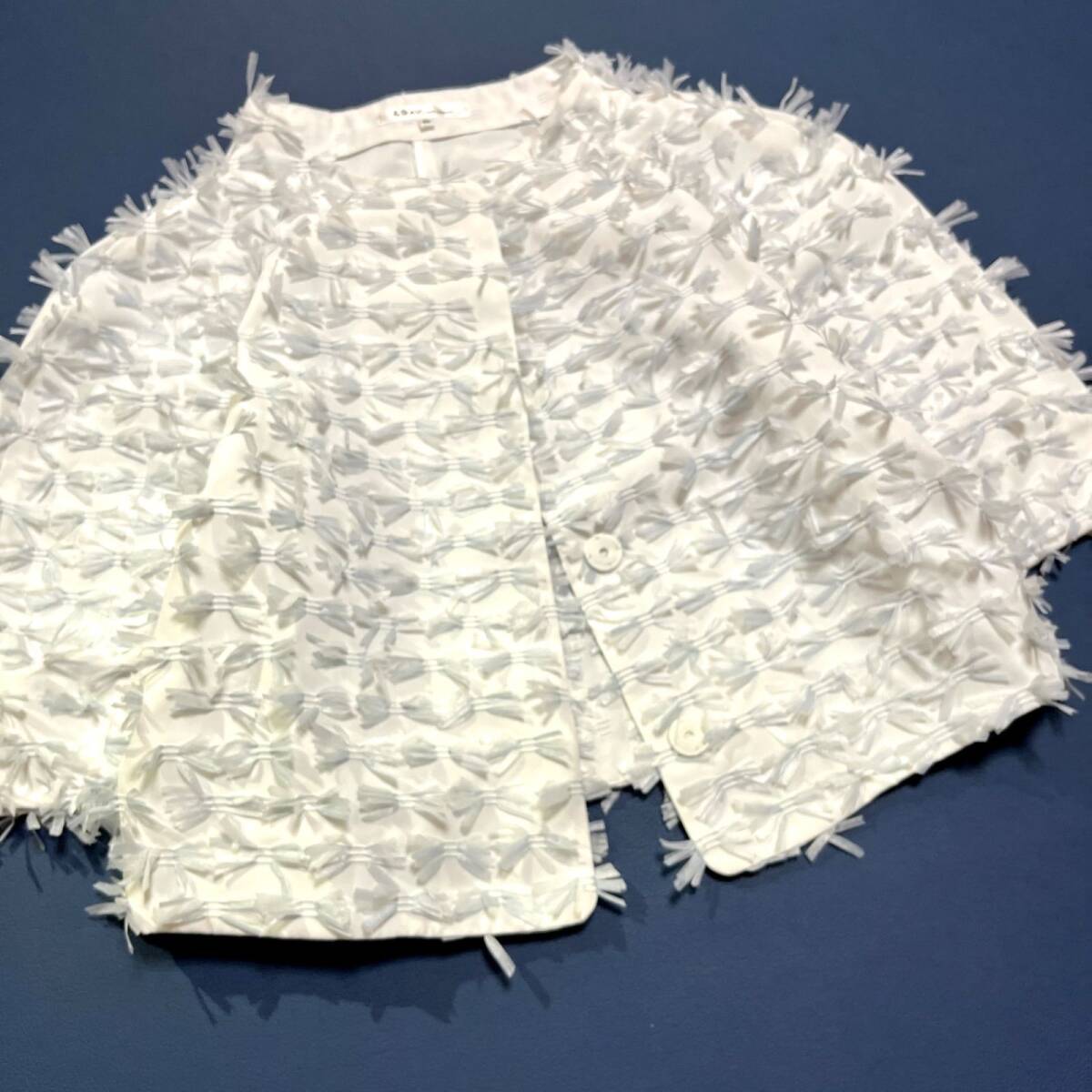 現行モデル 近年 リボン刺繍ジャケット ボリュームスリーブ ブルゾン スナップボタン 袖 7分丈 ボトルネック ライトアウター フォーマル