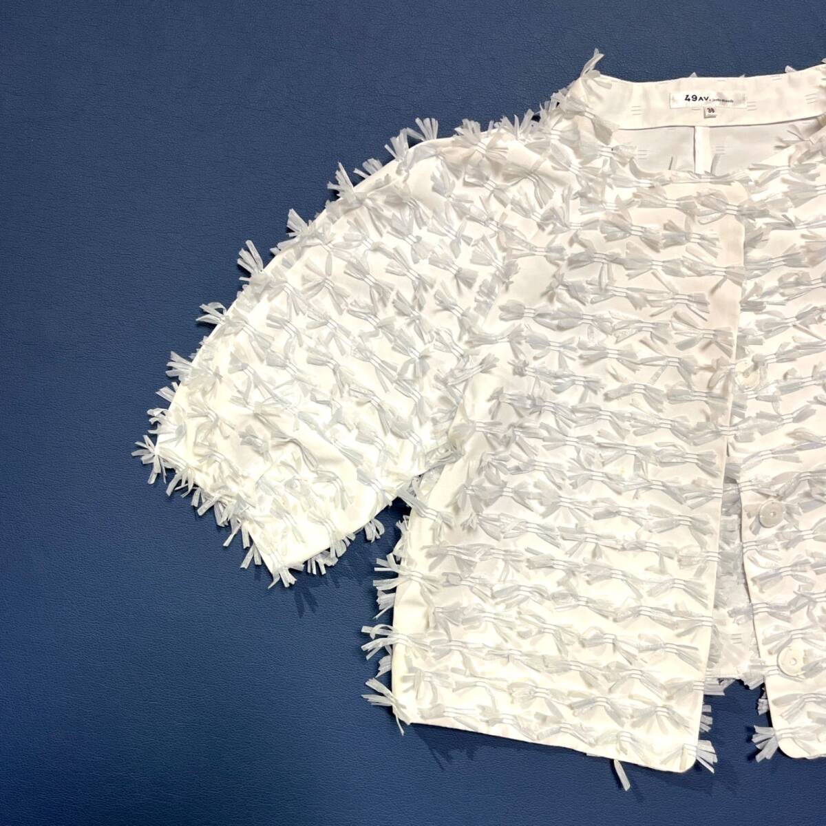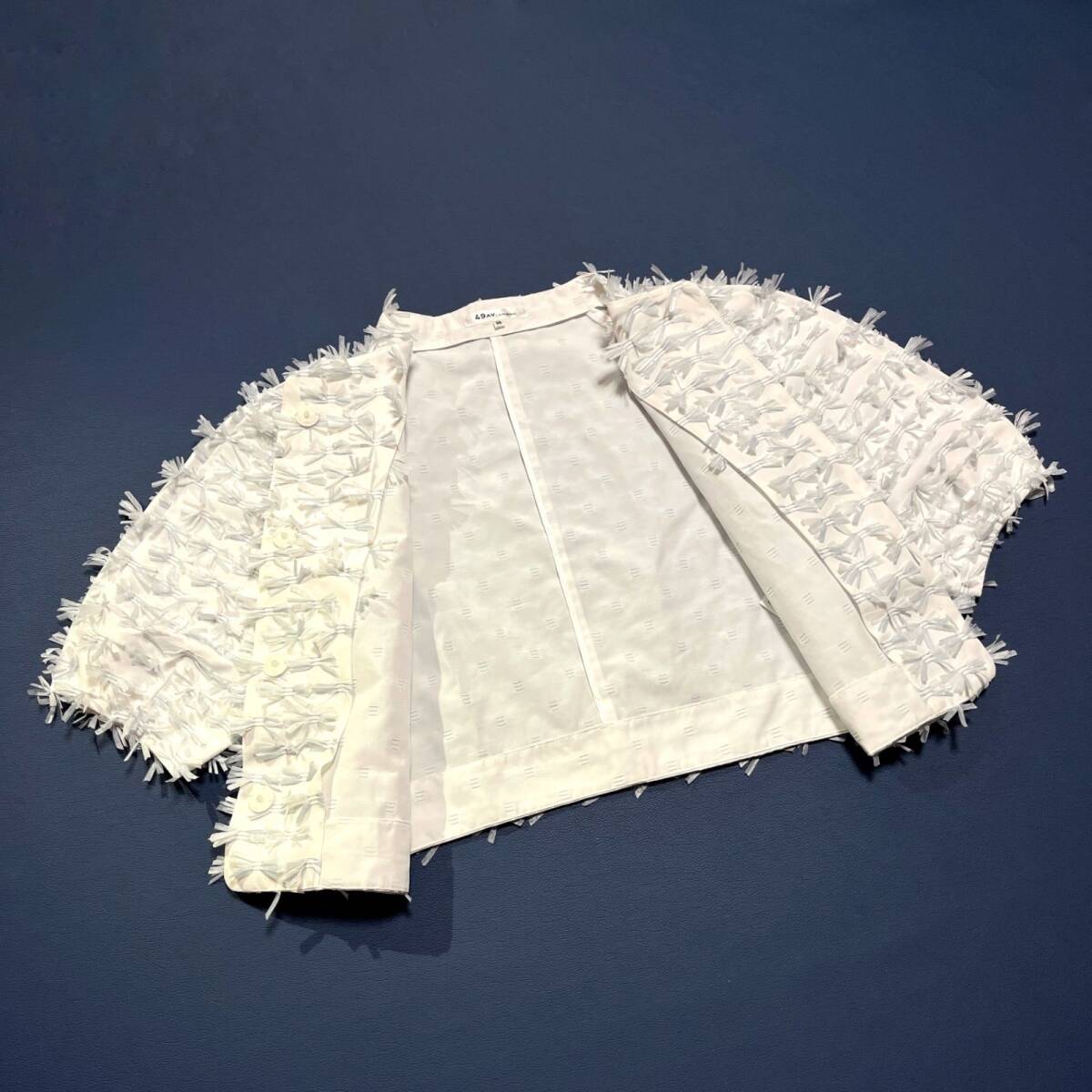 前開きはスナップボタンで着脱も簡単。ブルゾン感覚で羽織れる軽やかさがありつつ、刺繍ディテールが華やかさをプラスしてくれます。