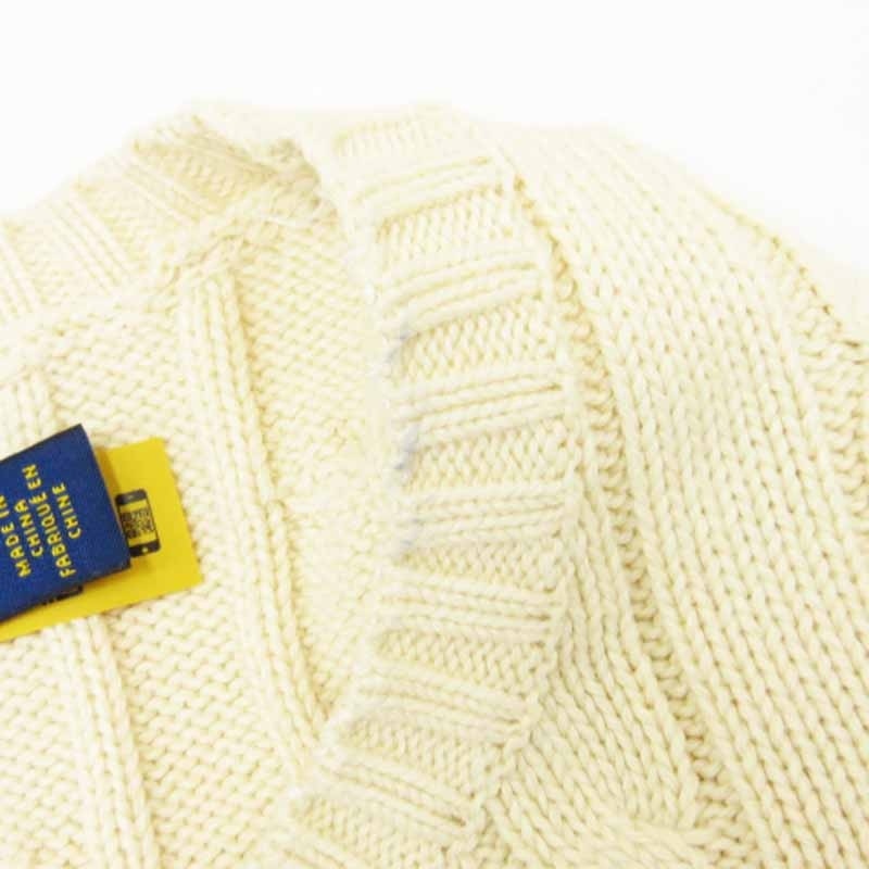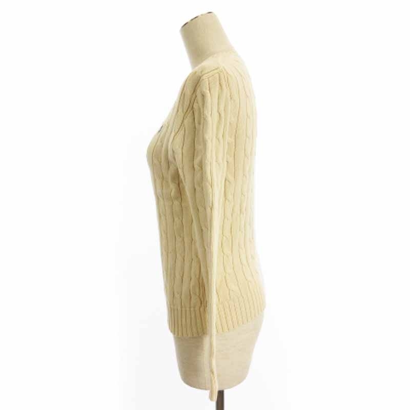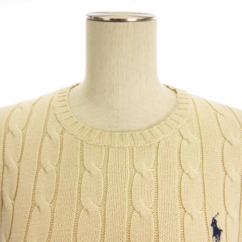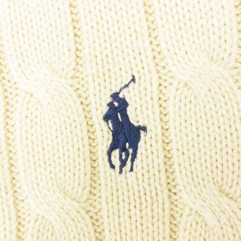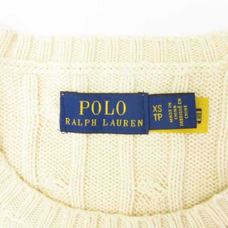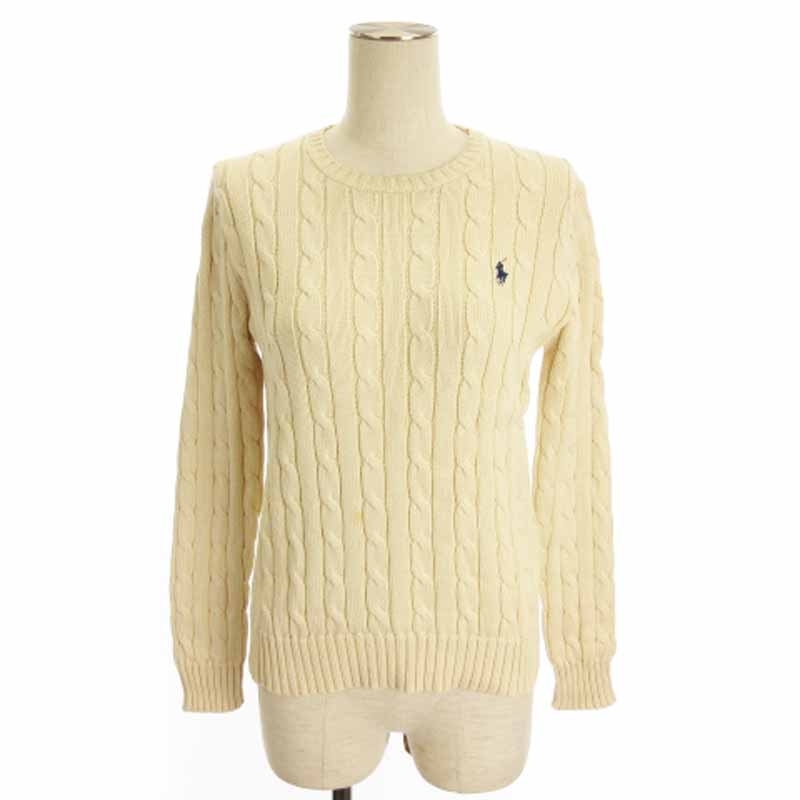 ポロ ラルフローレン POLO RALPH LAUREN ケーブル ニット セーター 長袖 クルーネック ロゴ刺繍 プルオーバー コットン アイボリー XS レディース