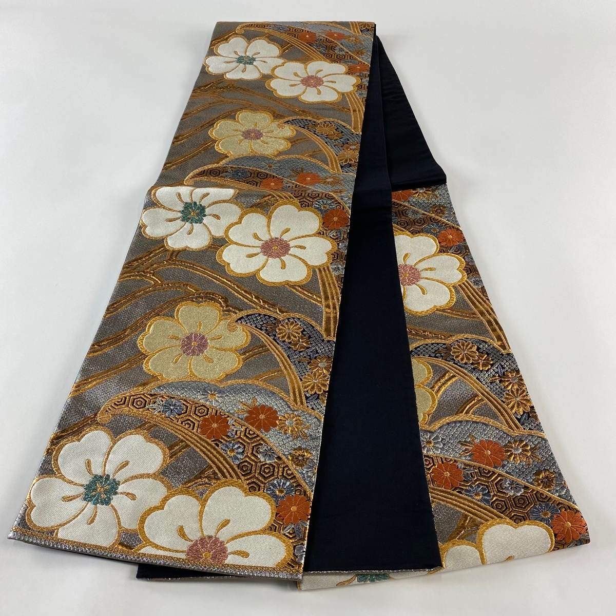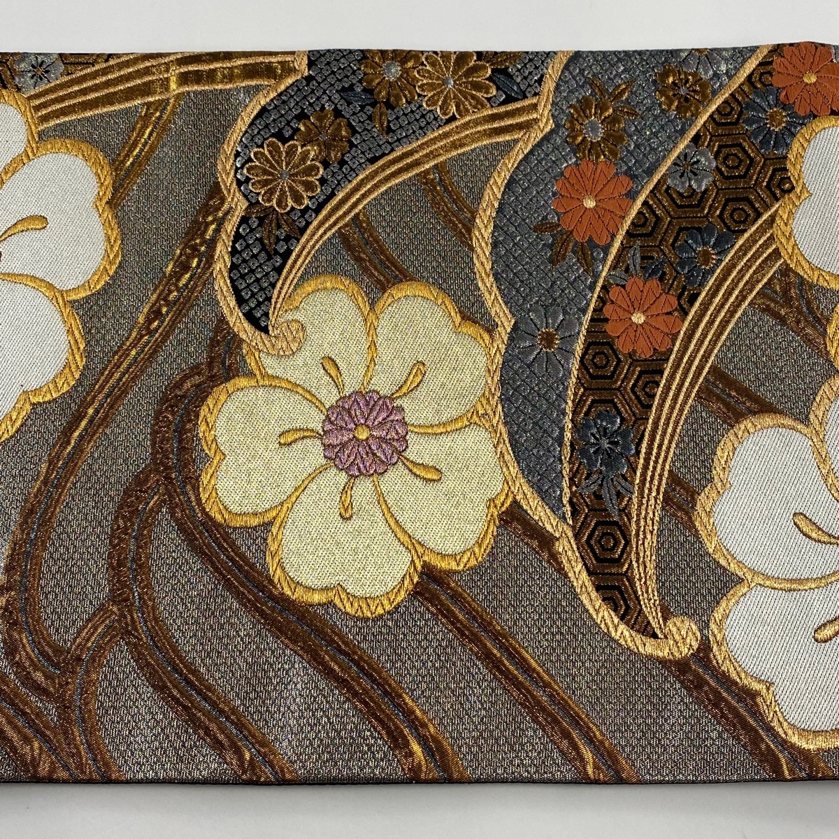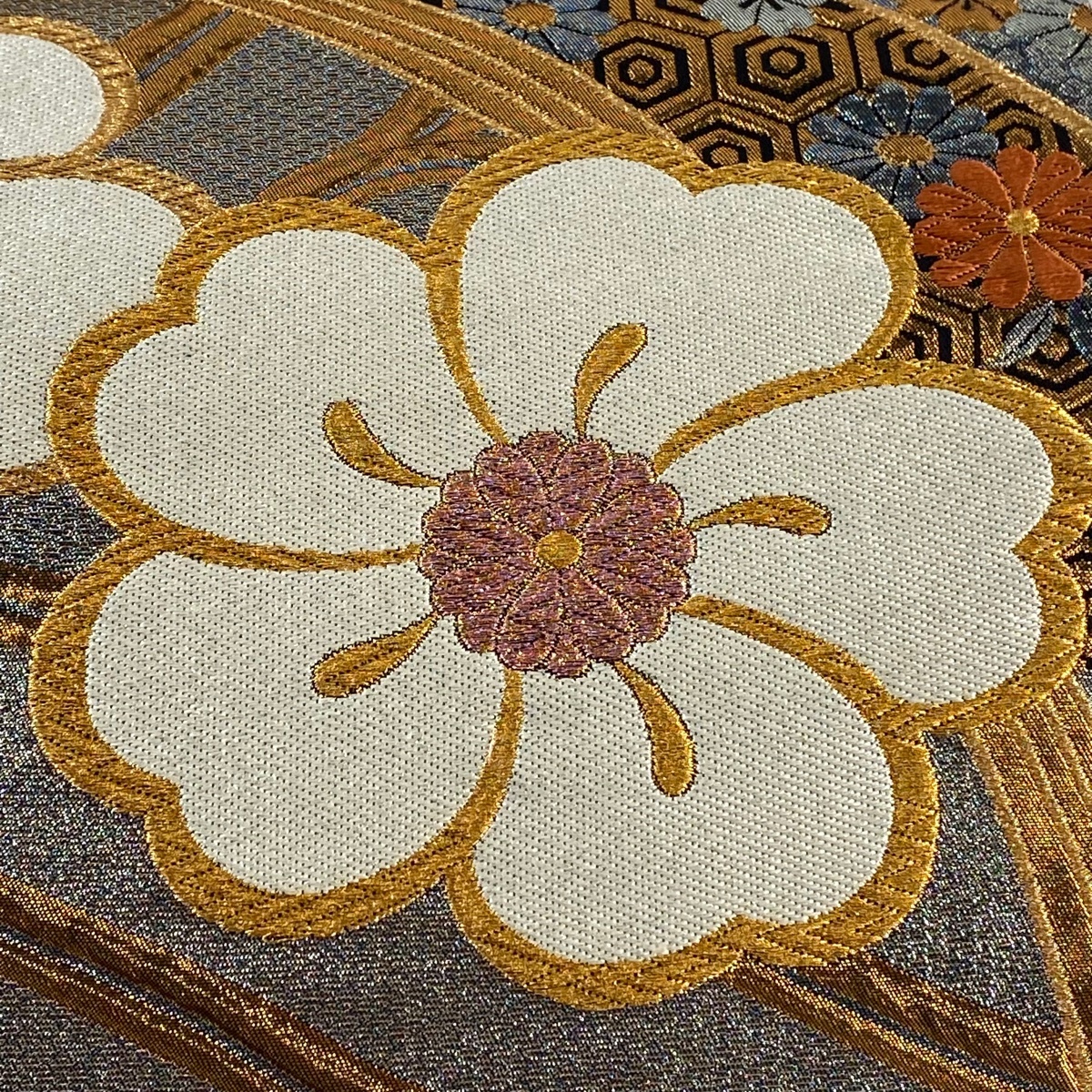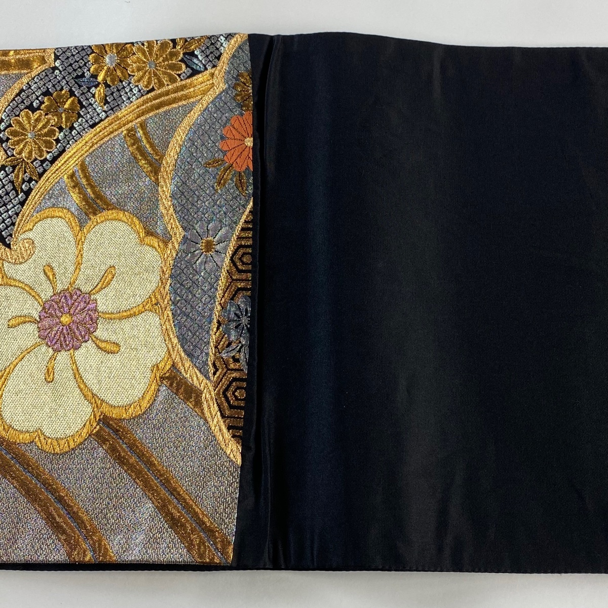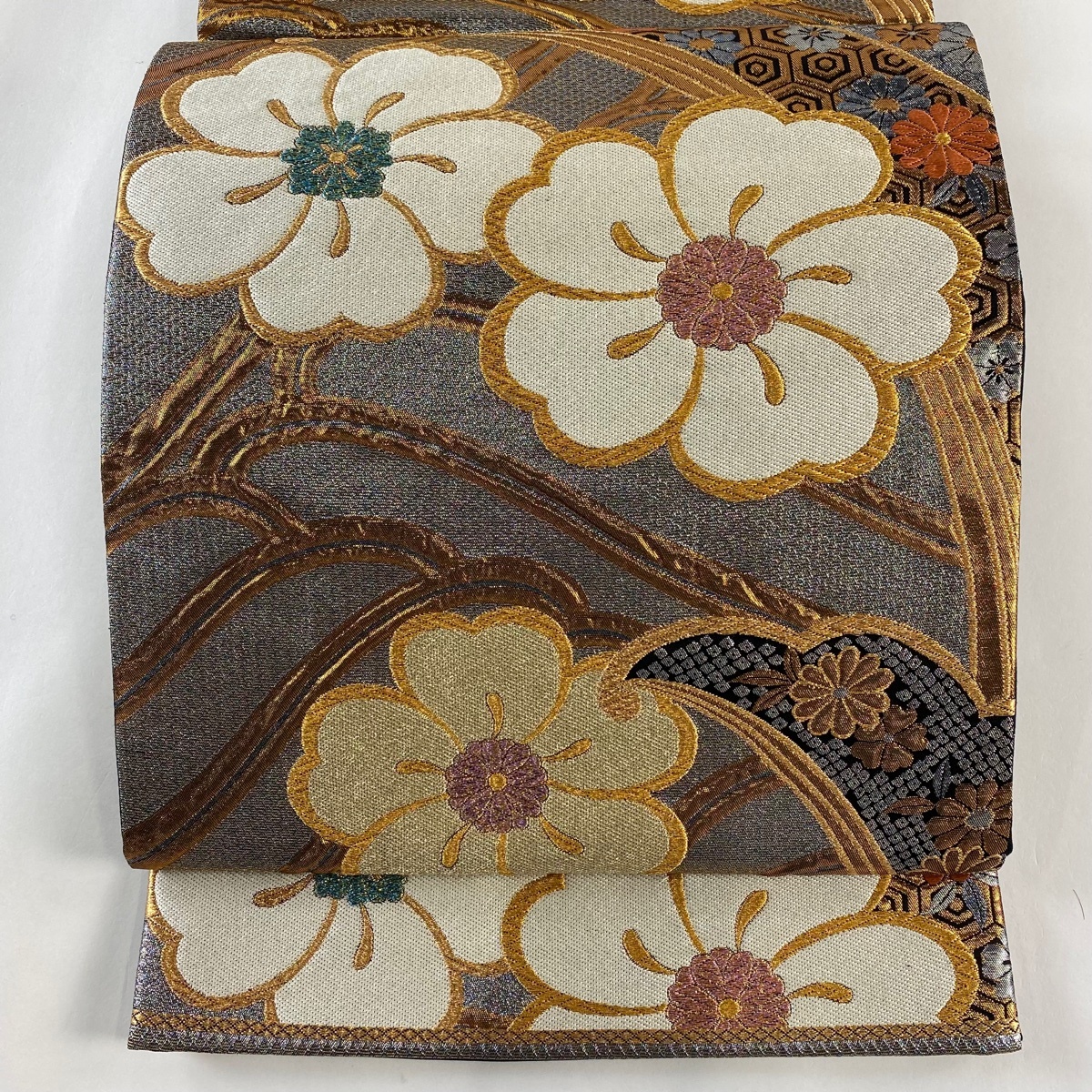 | 袋帯 美品 秀品 桜 亀甲 箔 唐織 黒 六通 正絹 【中古】 |