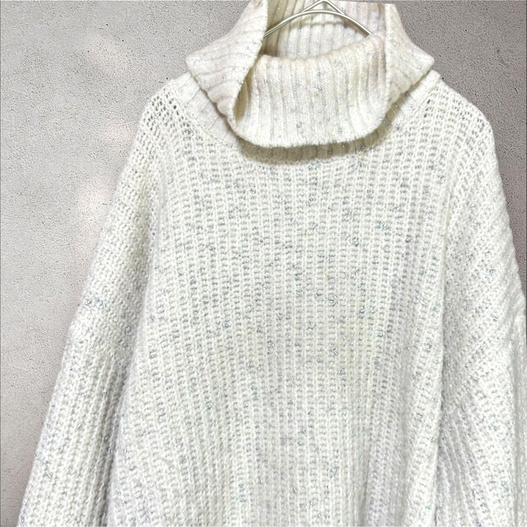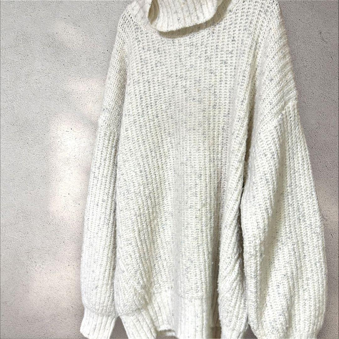 柔らかな肌ざわりのニット素材で、ゆったり着られるタートルネックセーターです。