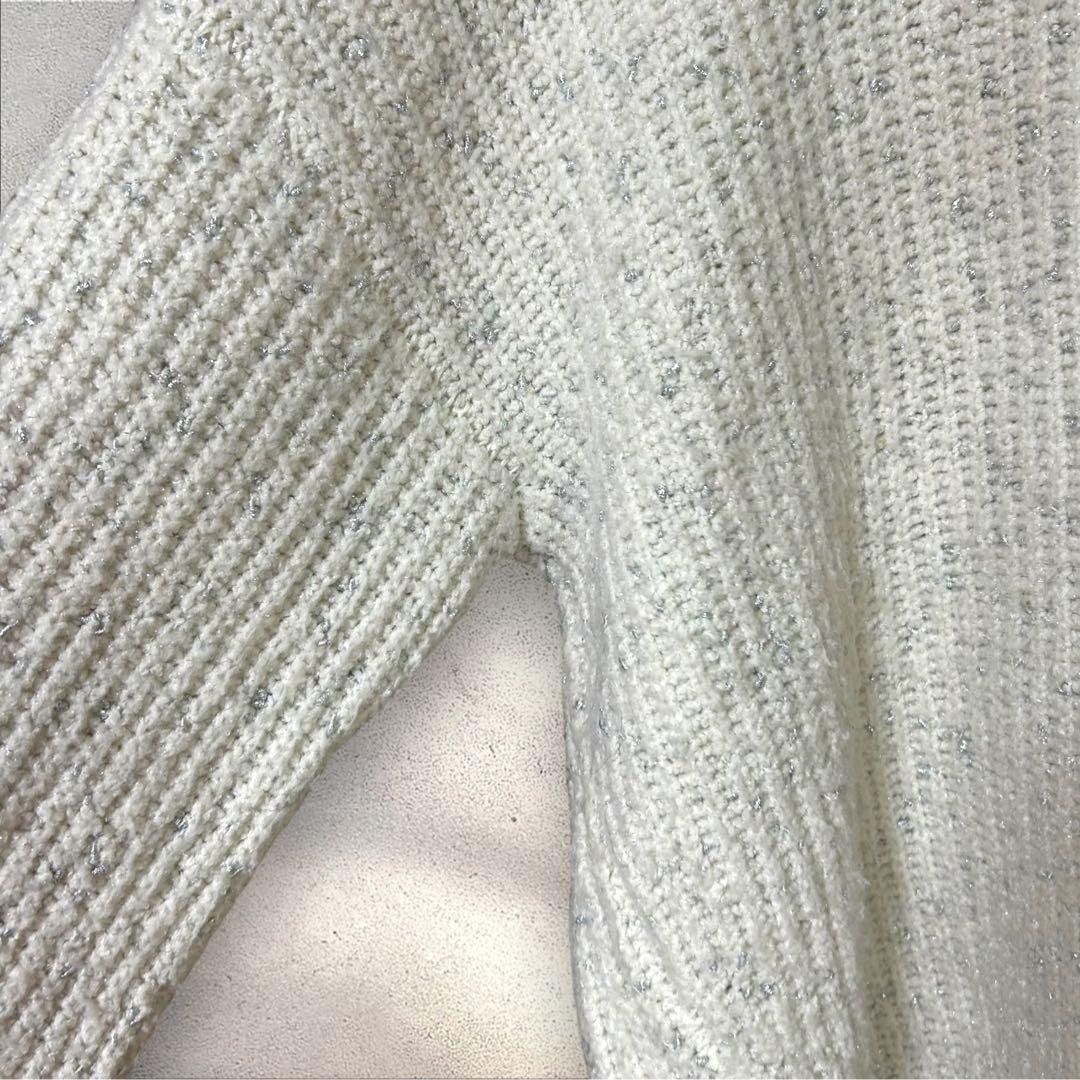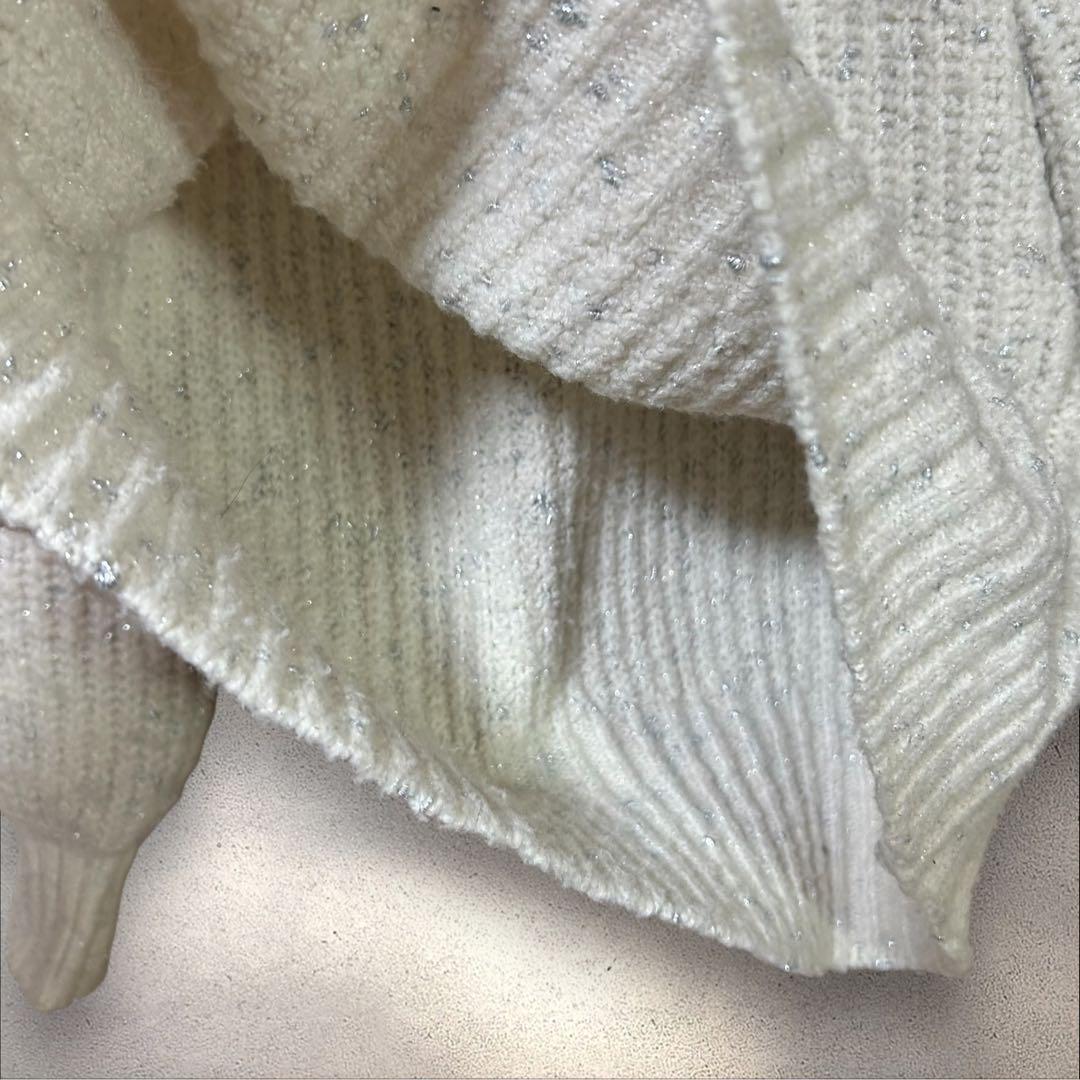 さりげなくラメ糸が編み込まれていて、写真では伝わりづらいですが、光に当たると上品に輝きます