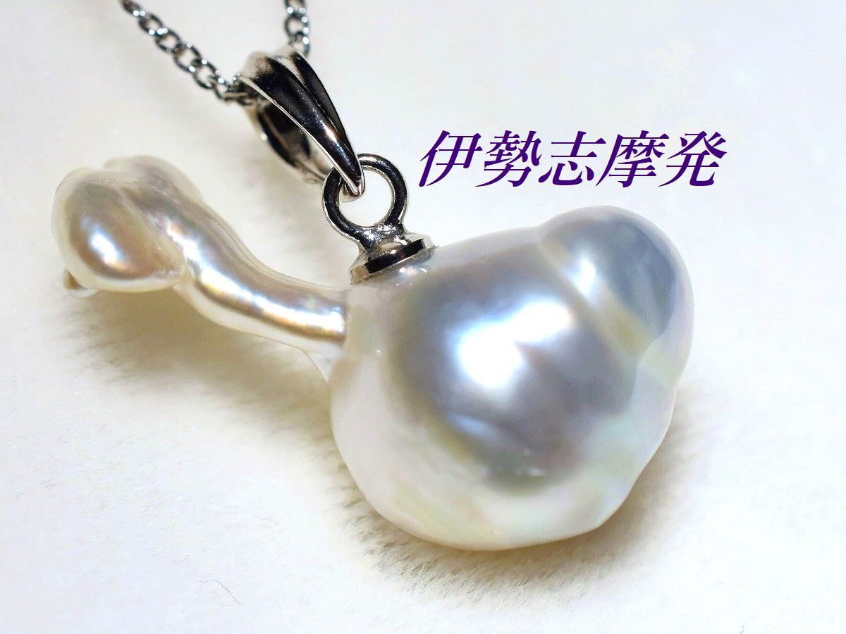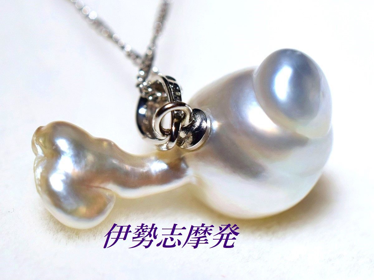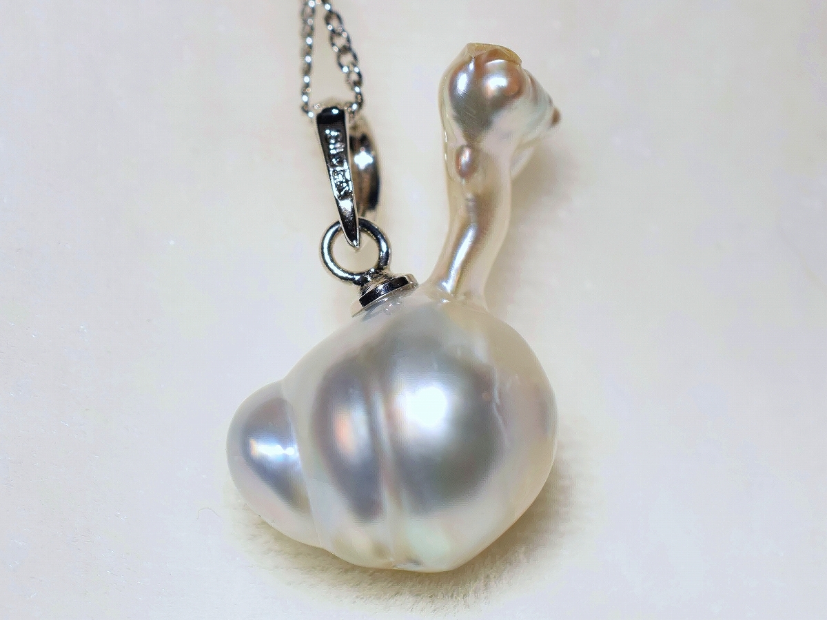 【真珠の種類】 天然白蝶真珠+白蝶芥子真珠 【珠サイズ】 横幅22㎜x頭の部分13,45㎜ 【珠の形状】 バロック・芥子 【色】 シルバーカラーにグリーンピンクの干渉色 【巻き】 非常に良い◎ 【照り】 非常に良い◎ 【キズ】 ほとんど無し・バロック・芥子 【エクボ】 ほとんど無し・バロック・芥子 【金具の材質】 ロジウムシルバー製 【デザインの大きさなど】 縦約21,5㎜x横幅20㎜ ◆上品で大人可愛いスタイルのトップです。◆ 此方は南洋白蝶ナチュラル真珠に芥子がくっついた、楽しいフォルムと美しい天然カラーに眩しく煌めく強いテリ感が一番の魅力!唯一無二の小鳥のようなキュートなフォルムのトップです。 シルクのような艶めきを放つシルバーカラーにグリーンピンクの干渉色がはっきりと出た大変美しい天然カラーです。ビジネスシーンや品格を大切にしたいシーンなどにもふさわしく、優雅で気品あるデコルテを演出します。 一粒パールのペンダントは、一つあると普段使いからセミフォーマルなシーンまで幅広く活躍します。お手持ちのチェーンでお楽しみ下さいませ。 | ||||||||