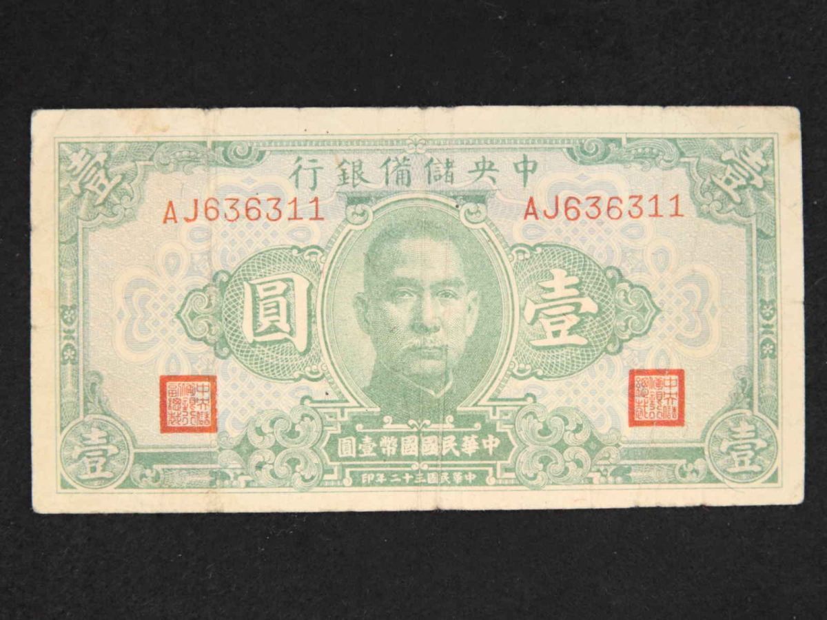 *[令]中国紙幣 中央儲備銀行 1圓(1943)P-J19[3617]7o2