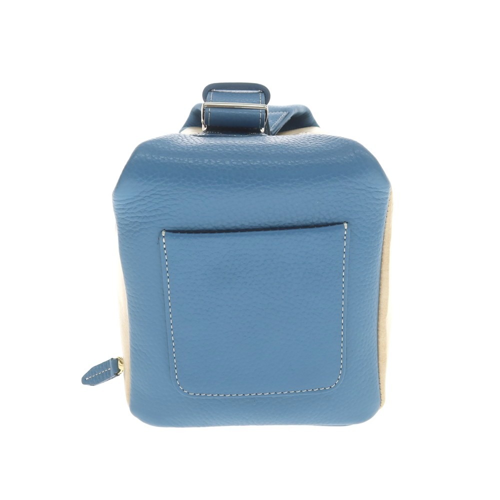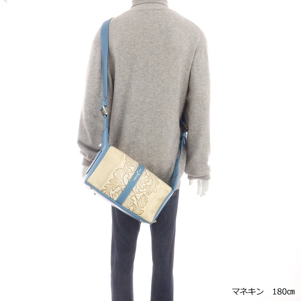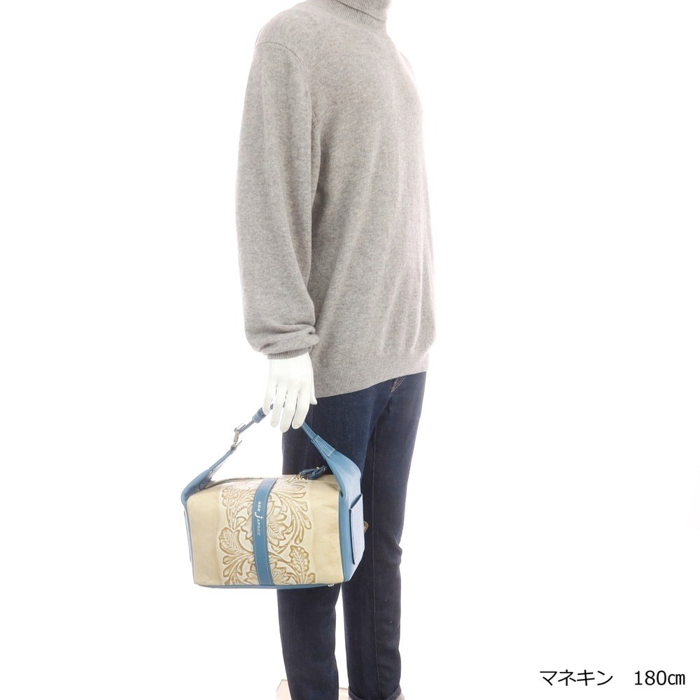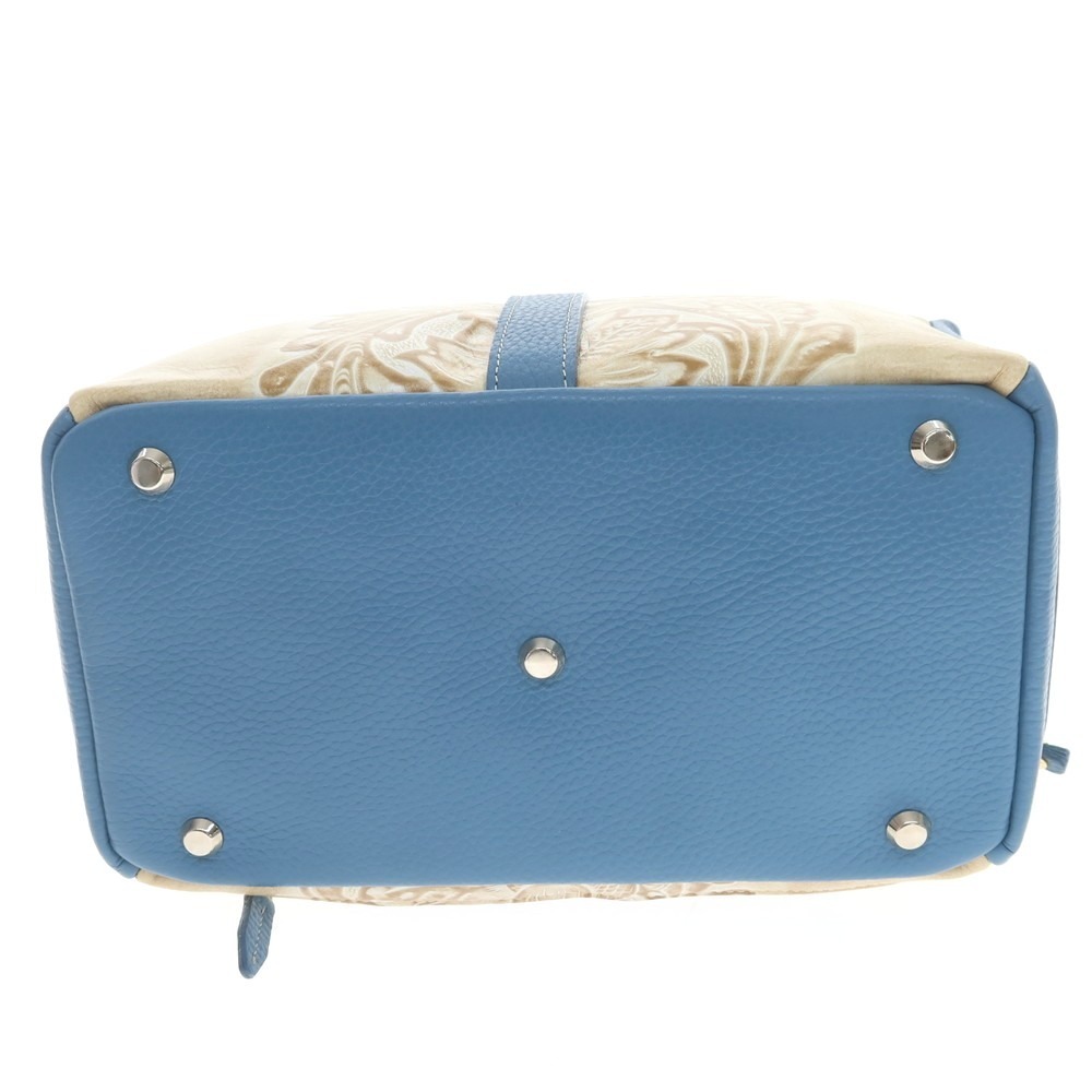 【未使用】ボンジャポネ BONJAPONE カービングレザー ハンドバッグ ブルーxライトベージュ【WxH14.5】 BPD
