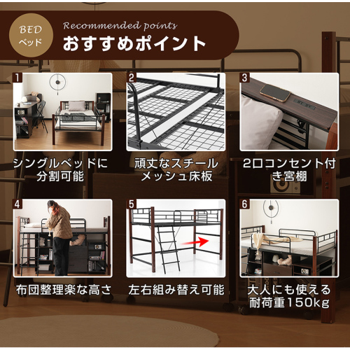• 【おしゃれで省スペース 】ベッド、デスク、ラックを一体化することで、限られたスペースを効率的に使えます。「寝る」「勉強する」「収納する」という3つの機能をまとめることで、快適で機能的な生活空間を作り出すことができます。