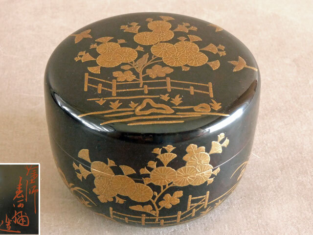 塗師 田中 表阿彌 うてな蒔絵 菊 平棗