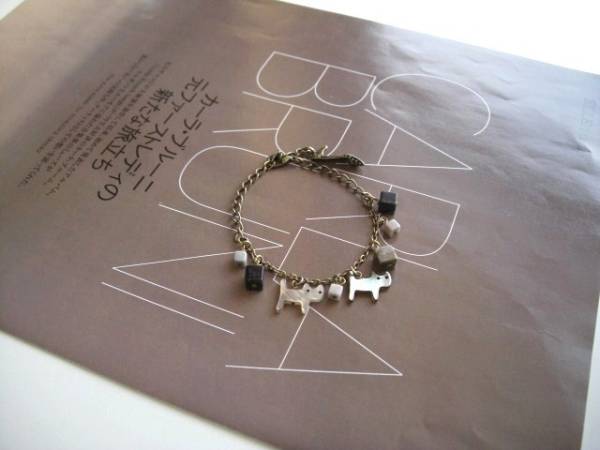 特別な一日・・シリーズです♪お散歩猫さん・・シックなジャスパーのブレスレットです♪個性的なキューブのピクチャージャスパーに黒蝶貝の猫さんを合 わせて大人可愛いブレスレットです♪ジャスパーは6ミリ、4ミリのキューブ、猫さんは15×13ミリ位です♪長さは全長23センチ位で調節自由です♪お揃いのネックレスやピアスや同じデザインのうさぎさんも出品しています♪♪シン プルで飽きのこないいつまでも着けられるデザインを 考えて作りました!ハンドメイドをご理解頂いてノークレーム、ノーリターンでお願いします