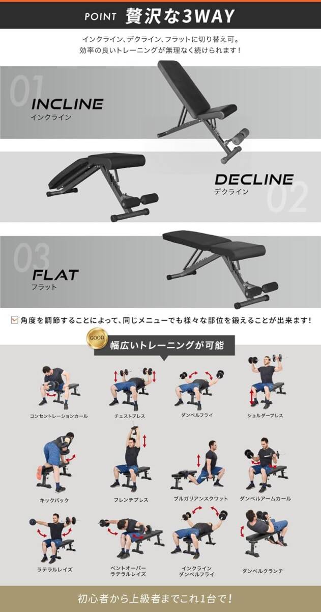筋トレ革命 1台で全身鍛える魔法のベンチ 可変式 トレーニングベンチ 4WAY インクラインベンチ 折り畳み デクラインベンチ