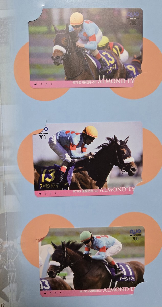 来場ポイントキャンペーン1等賞のアーモンドアイ三冠クオカード700円×3枚です。
