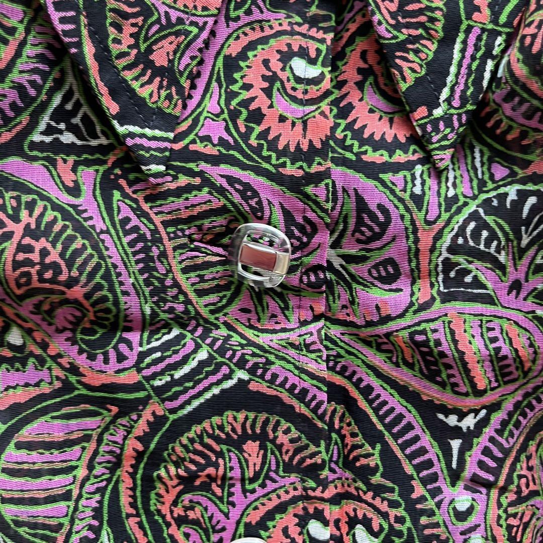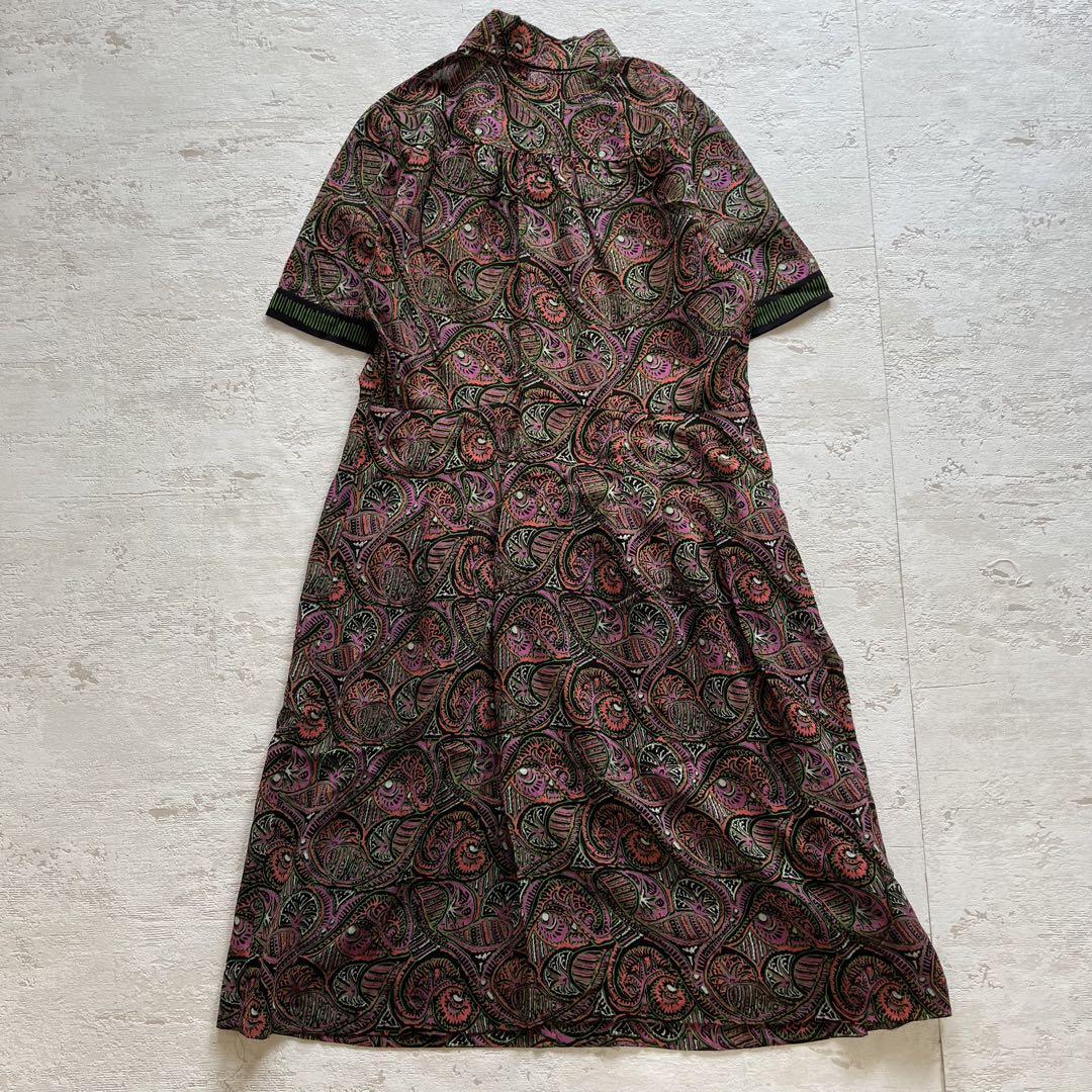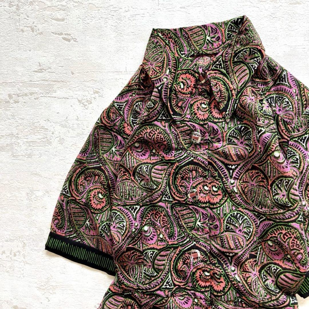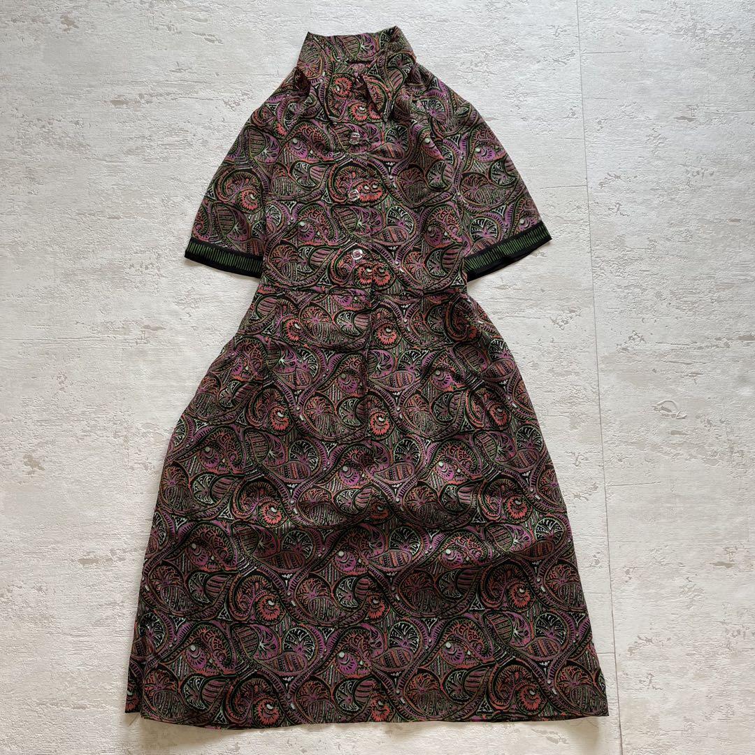 レトロヴィンテージパターン柄半袖ロングワンピース総柄フリーカラフル手書き風D
