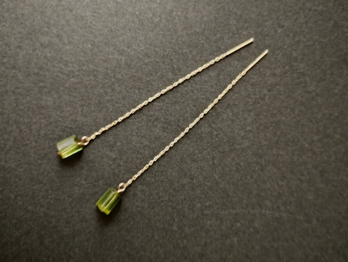原石トルマリンのアメリカンピアスK10◆グリーン緑チェーンピアス[Sot to] EN JEWELLERY