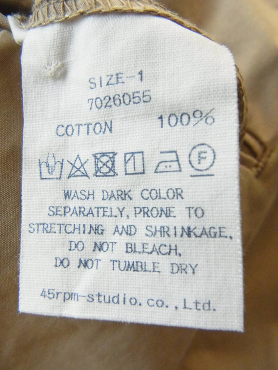 45R  フォーティーファイブのコットン素材でワイドシルエットのパンツになります。USEDで着用感と、裾部分に9枚目の画像の様なスレによるダメージが御座います。それ以外には特に目立ったダメージ等は御座いません。