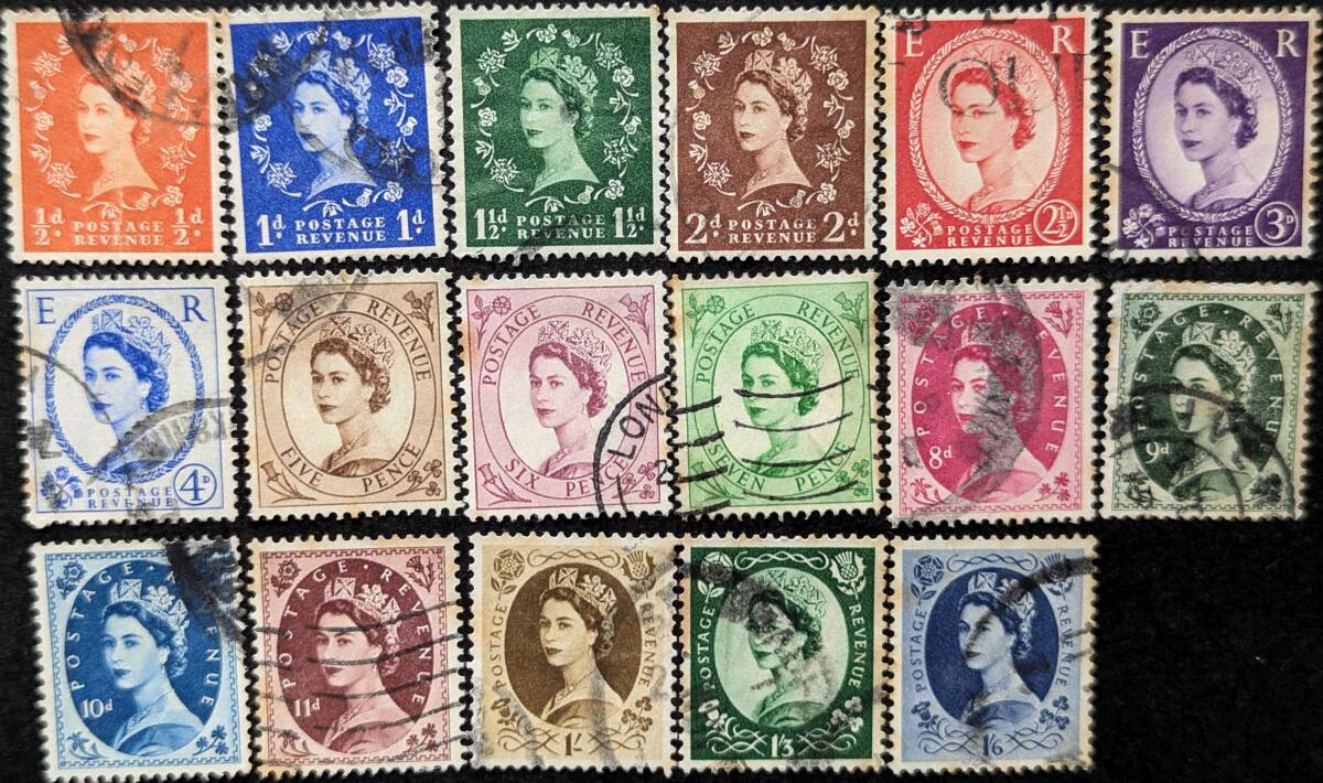 【外国切手】 イギリス 1952-1954年 発行 エリザベス女王2世 透かし選別せず 消印付き