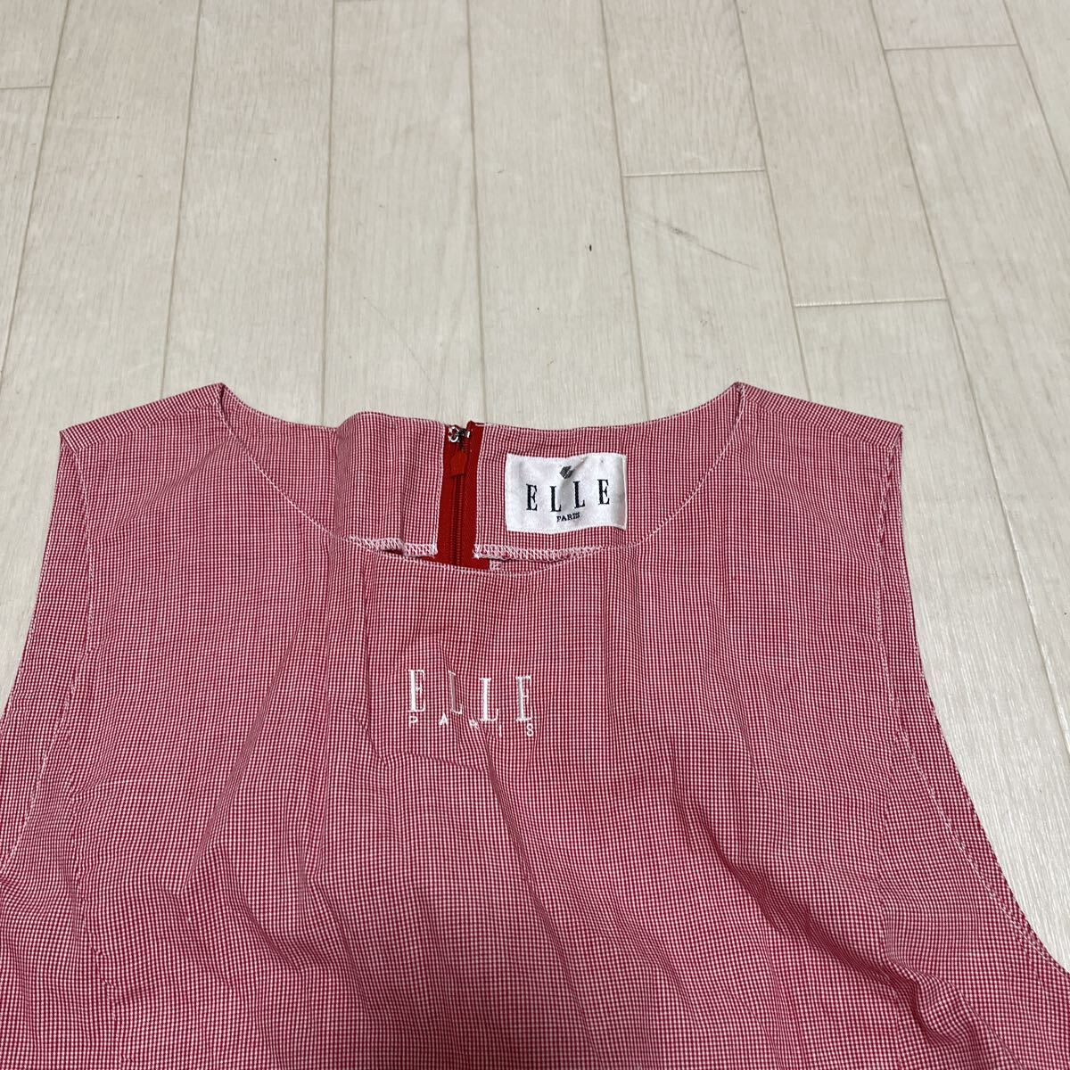 和805★ ELLE PARIS エル ノースリーブ ロングワンピース 薄手 9 レッド レディース