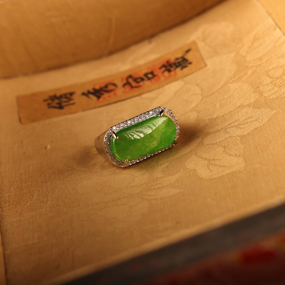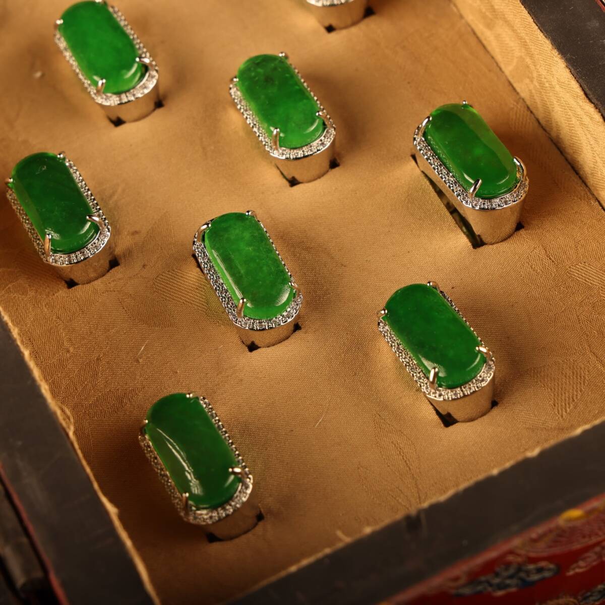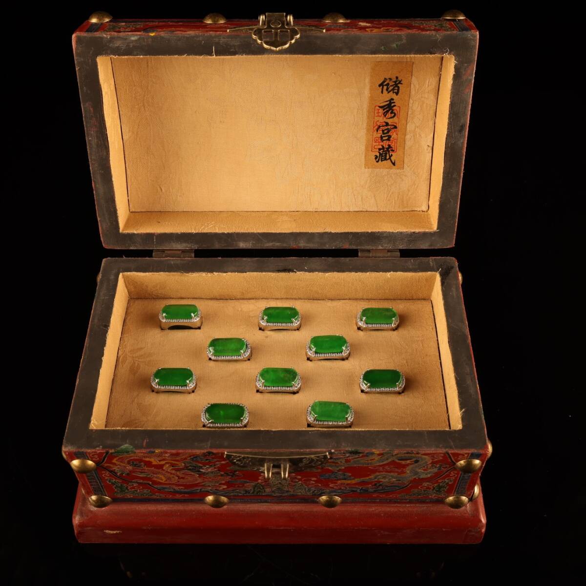 唐物 清 高冰種陽綠翡翠 戒指一盒 品相保存完好 配老漆器盒一個 極細工 古美術品 時代物 中国古玩 骨董品 D67