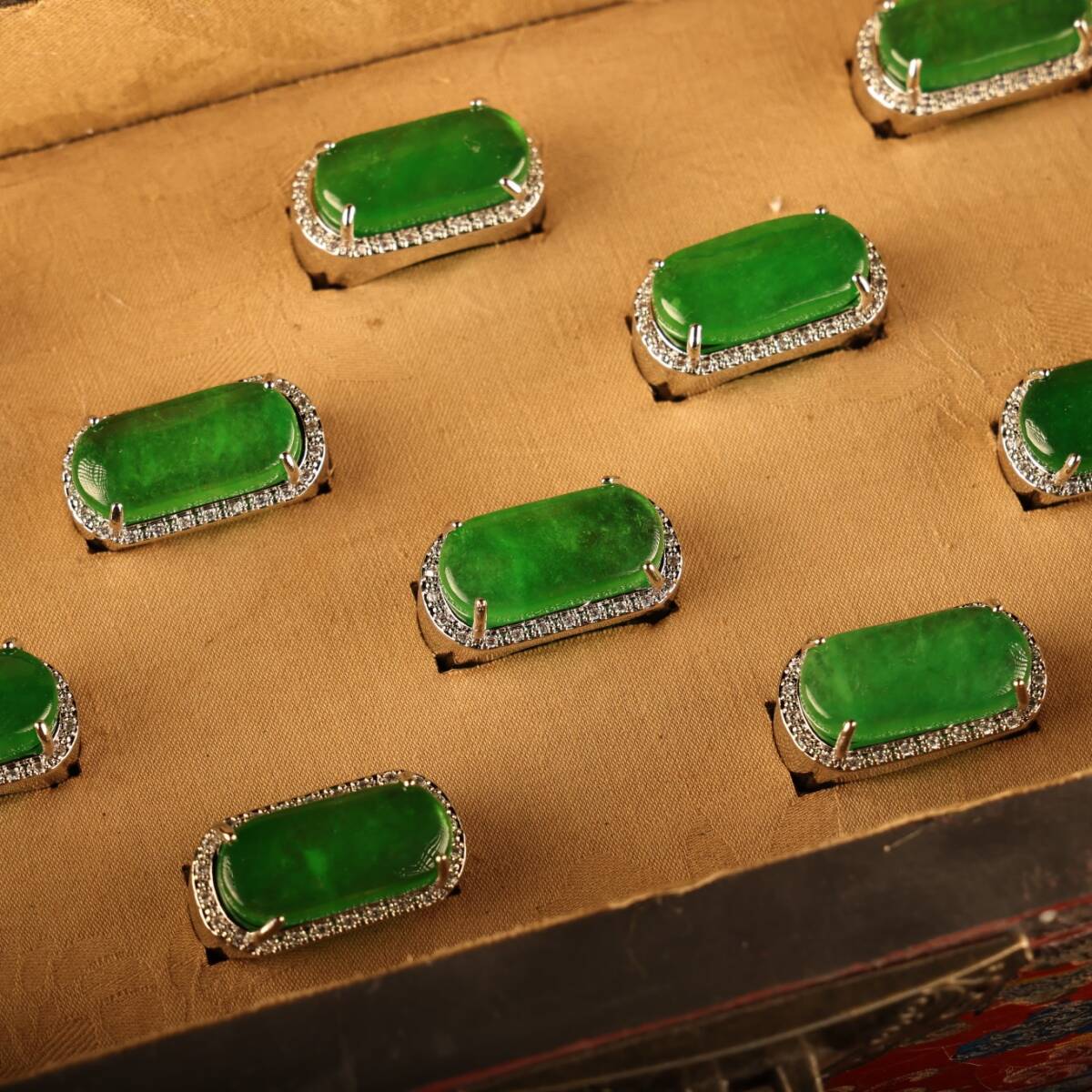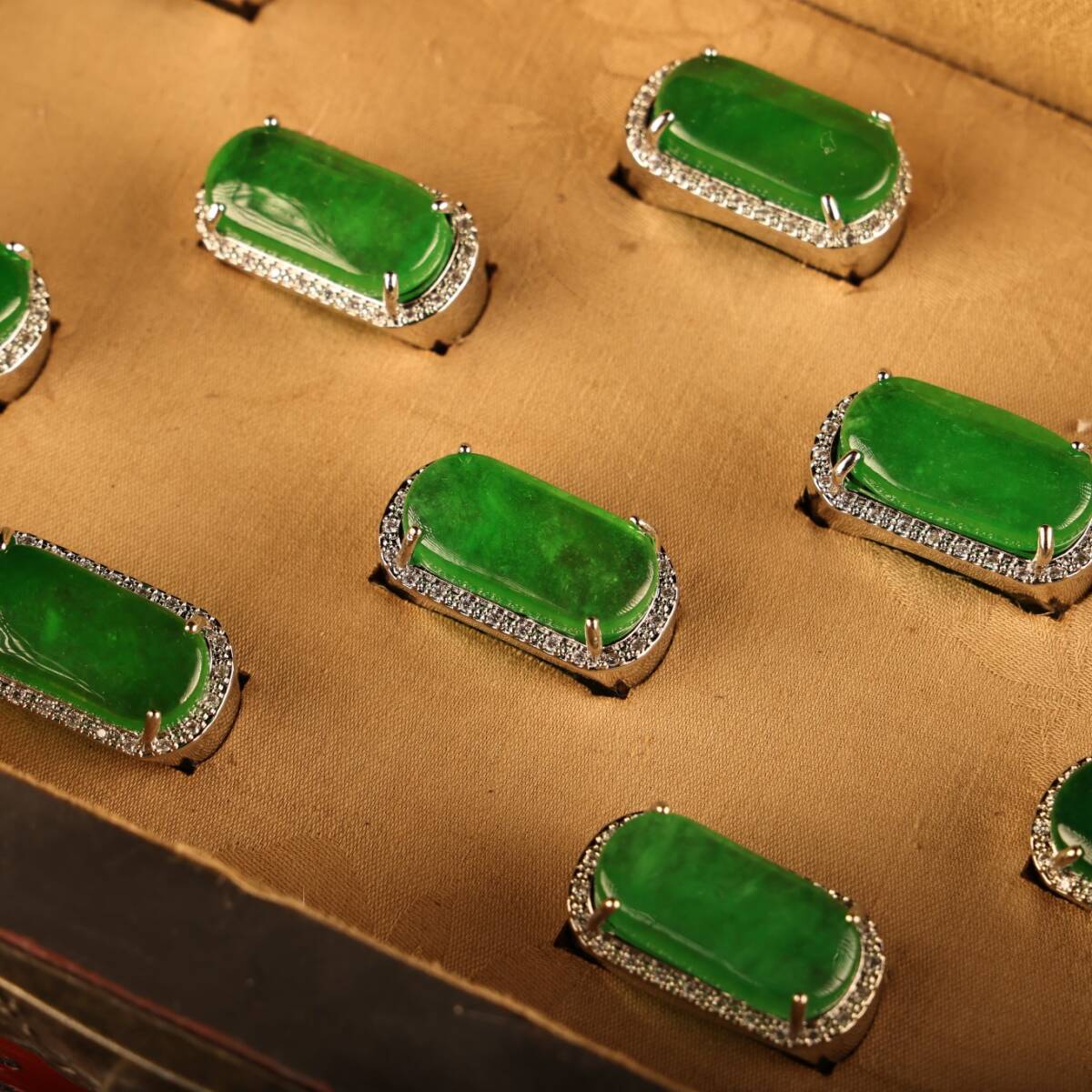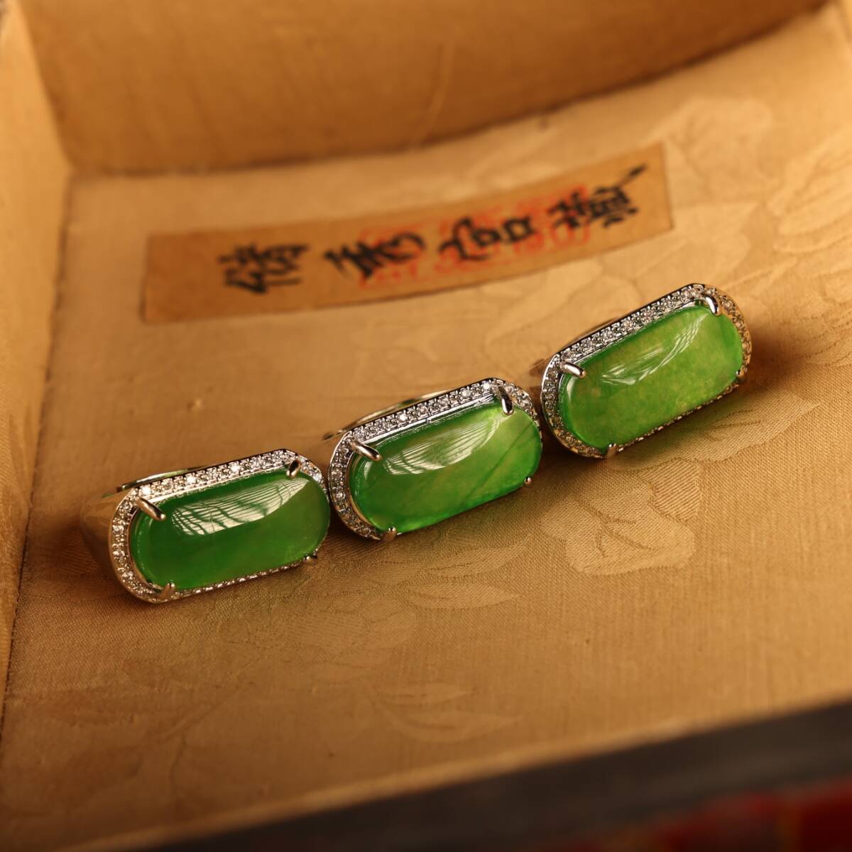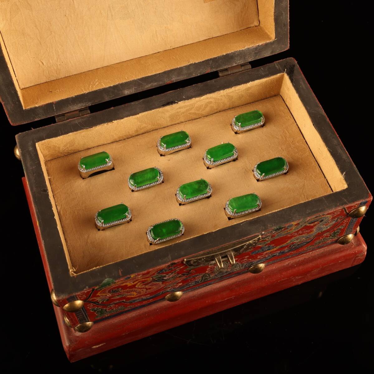 唐物 清 高冰種陽綠翡翠 戒指一盒 品相保存完好 配老漆器盒一個 極細工 古美術品 時代物 中国古玩 骨董品 D67
