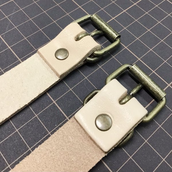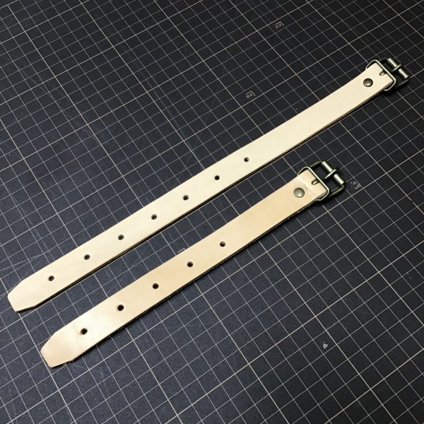 鞣し加工後は未加工の素上げになりますので、使い込むうちにキャメル色にやけてきます
