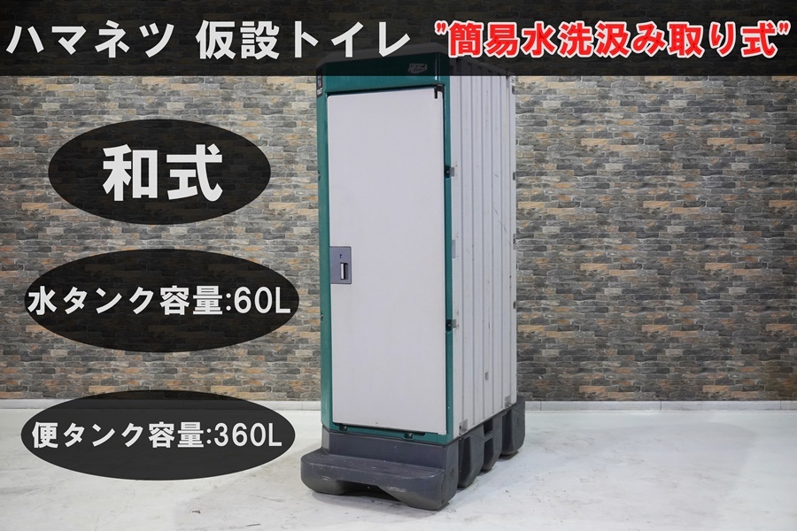 Design by. templu.net オークションをご覧頂き有難うございます。 皆様に、出来るだけお安く提供する為に 【値下げ交渉あり】での 出品となります! お値下げの交渉や 複数台購入のご要望は 弊社までお気軽にご連絡下さい! 株式会社丸総グループ 0569-47-8221 ※商品詳細下の本商品説明を必ずお読みください※ ご紹介させていただくのは ハマネツより 簡易水洗汲み取り式 【仮設トイレ】 のご紹介です。 ●壊れにくく、丈夫な ドアロックを採用 ●水量ゲージ付きで 一目で水量の確認ができます! ●オリジナル便器の特殊設計で 飛散防止を実現します。 新品参考価格(約)200,000円(税込)