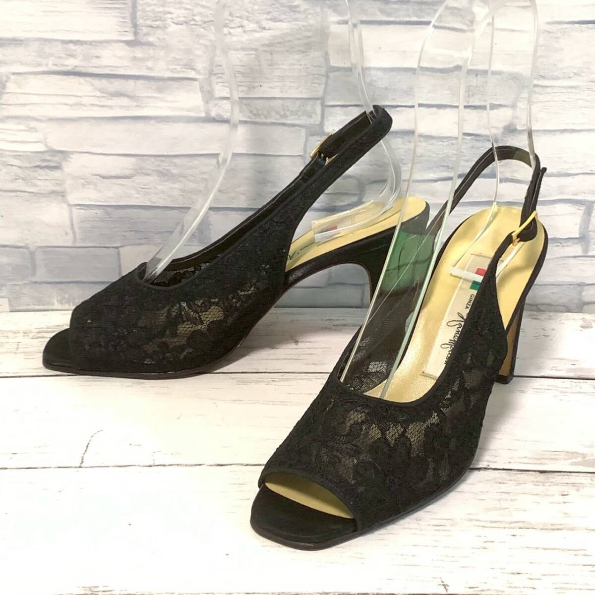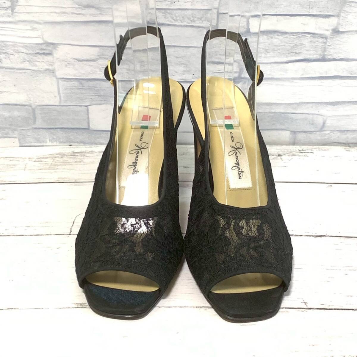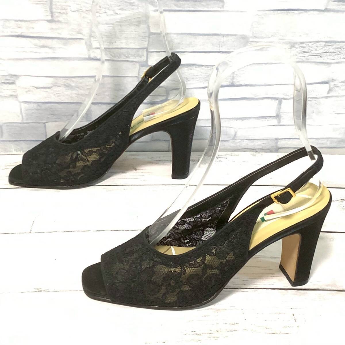 R9089bA 銀座かねまつ GINZA Kanematsu 23.5cm ヒールパンプス ヒール高さ7.5cm位 ブラック レース レディース ウィメンズ