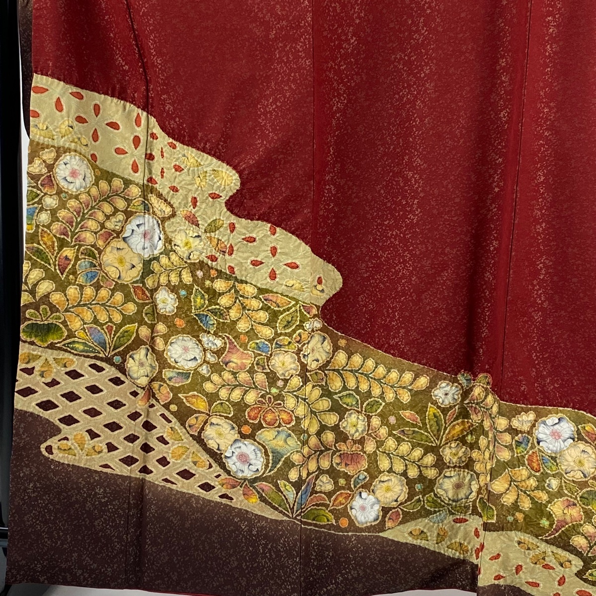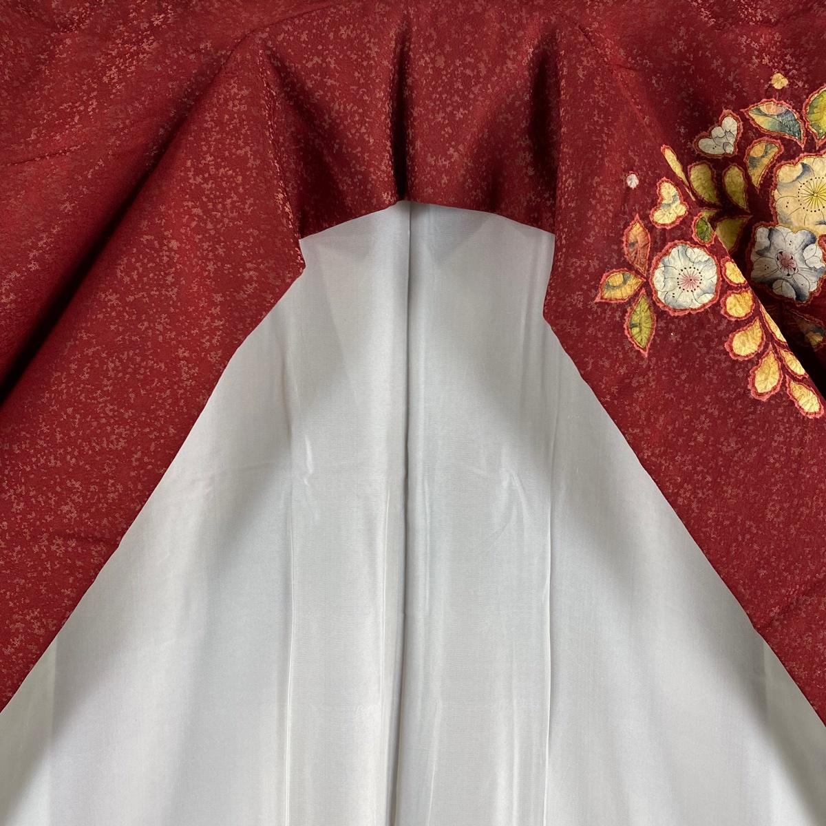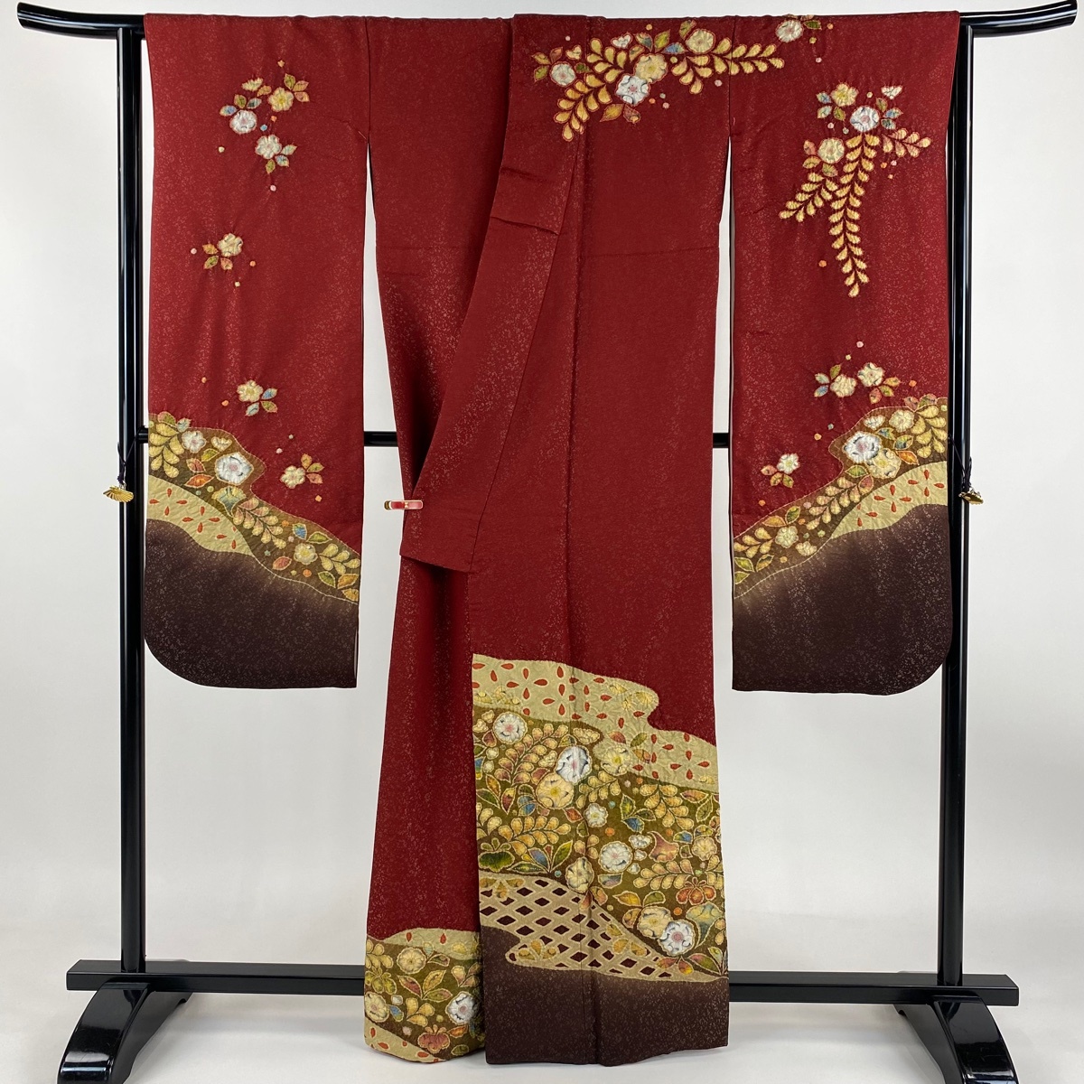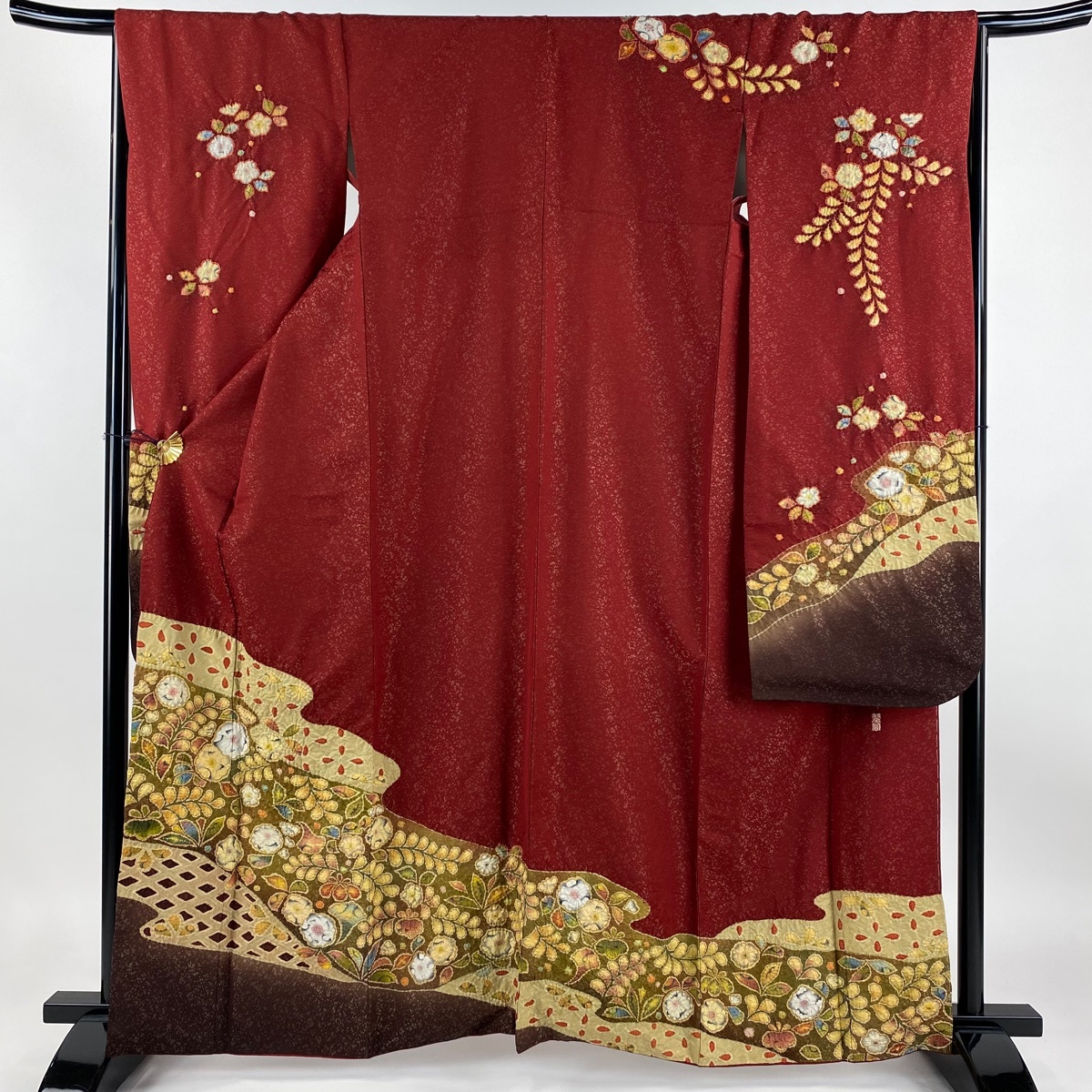 | 振袖 美品 逸品 翠山工房 落款 やまと 辻が花 金通し 金彩 赤 袷 身丈162 裄丈66.5 M 正絹 【中古】 |